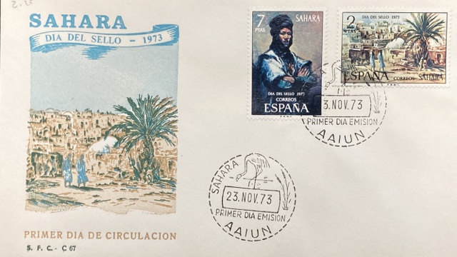 Sobre Primer día – Día del sello 1973 – Sahara – 2 Valores