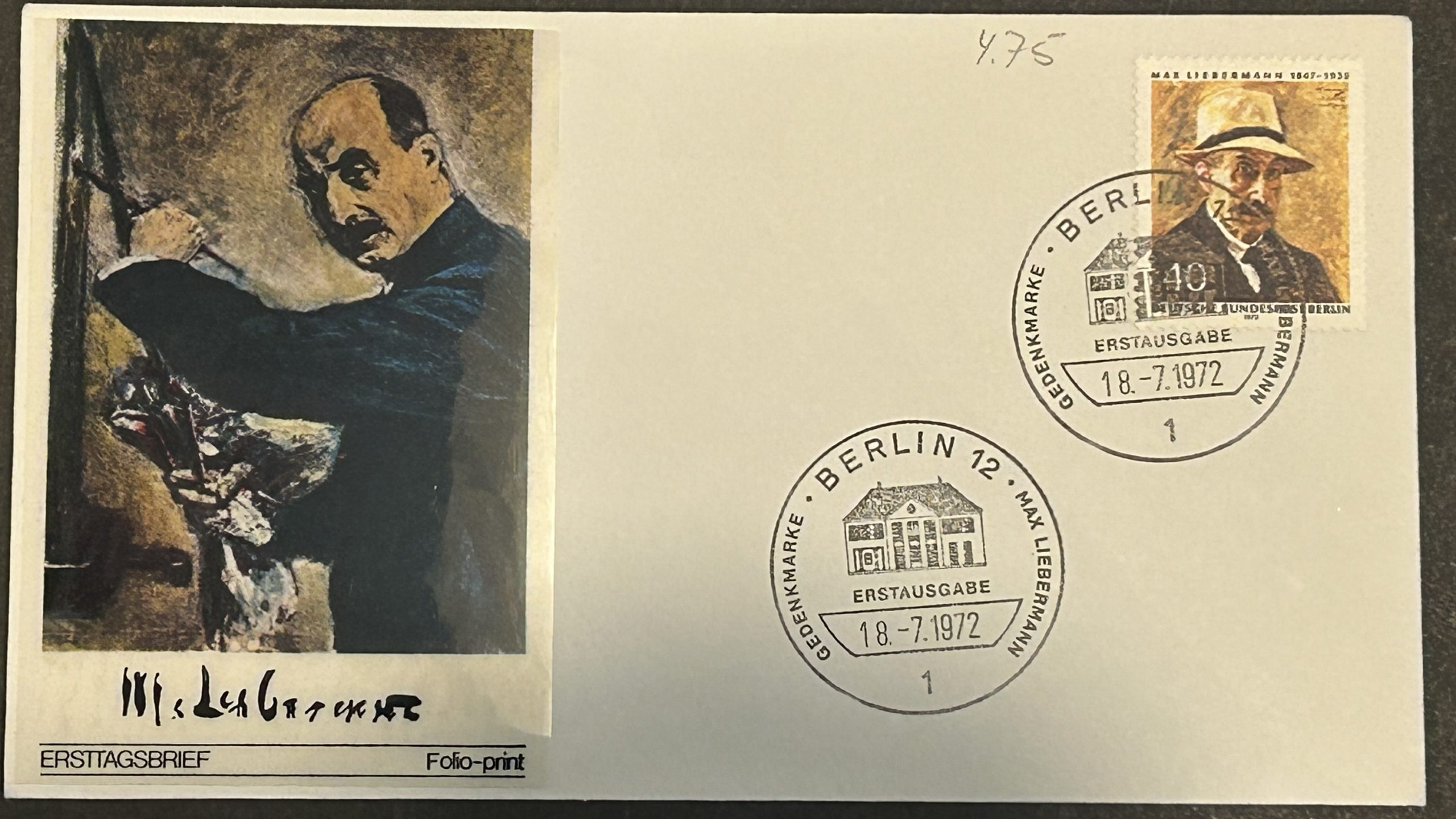 FDC Sobre Primer Dia – Alemania 1972 – Max Lieberman