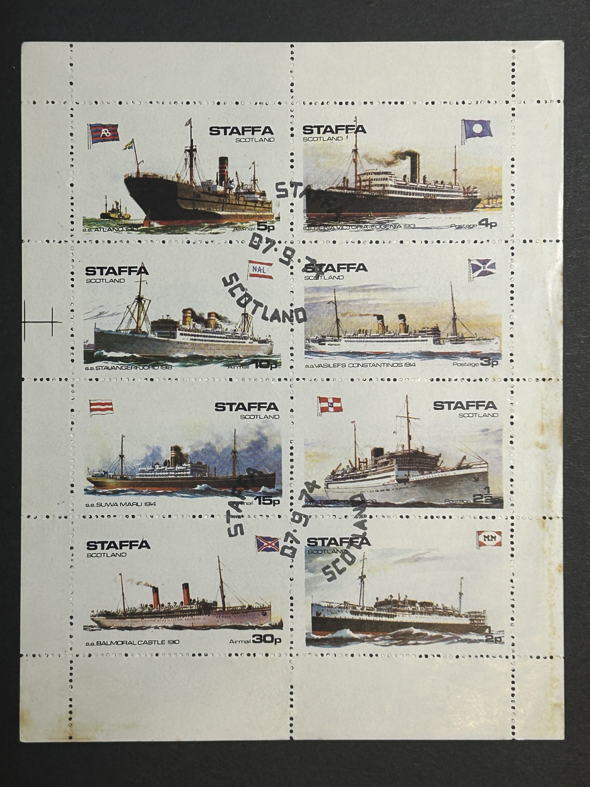 Minipliego Sellos Staffa 1974 – Scotland – Barcos de Vapor – 8 Valores