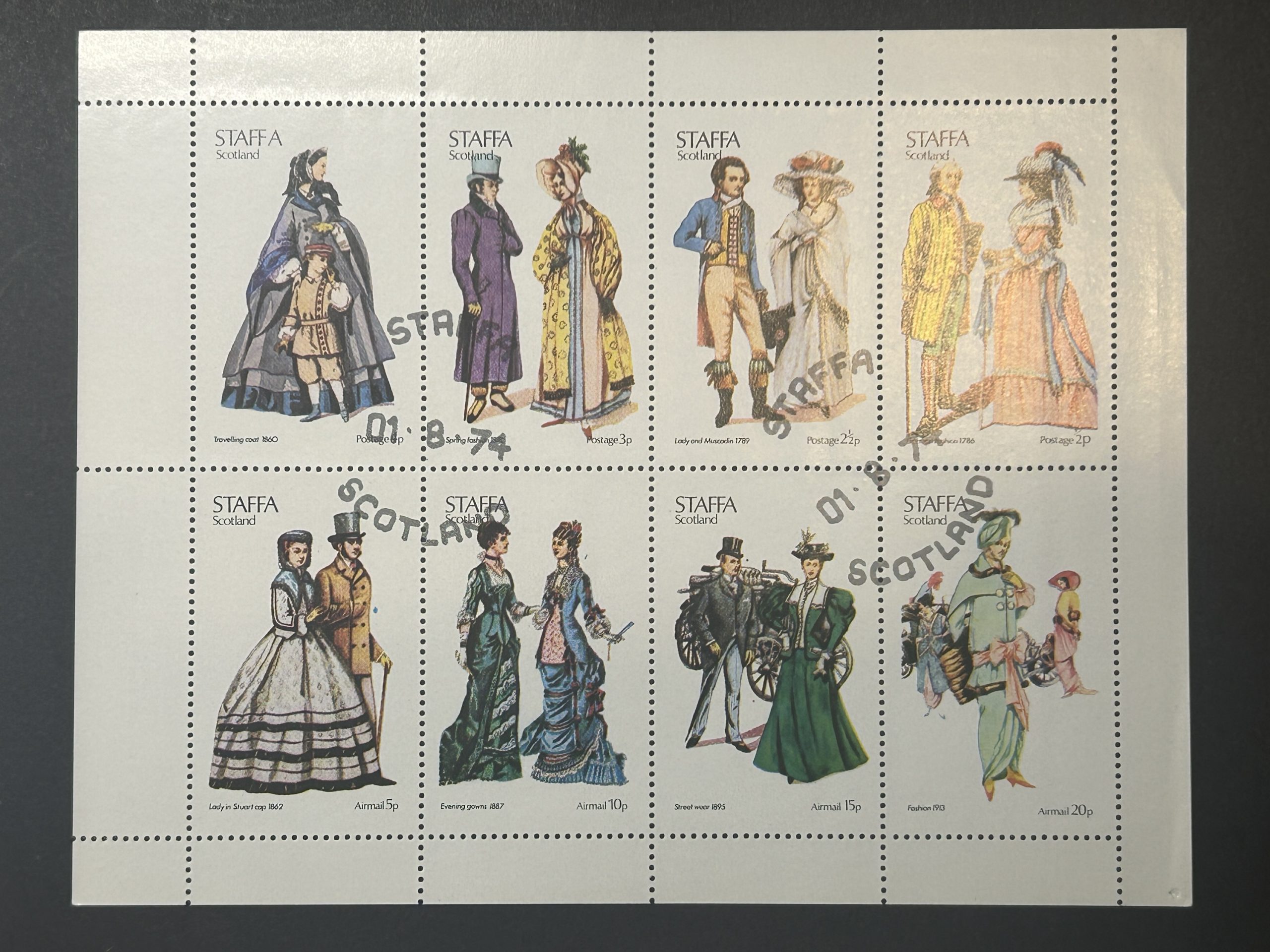 Staffa, Escocia, Gran Bretaña. Minipliego de ocho sellos precancelados Sellos atribuidos a Clive Feigenbaum con una fantástica historia! https://en.m.wikipedia.org/wiki/Clive_Feigenbaum