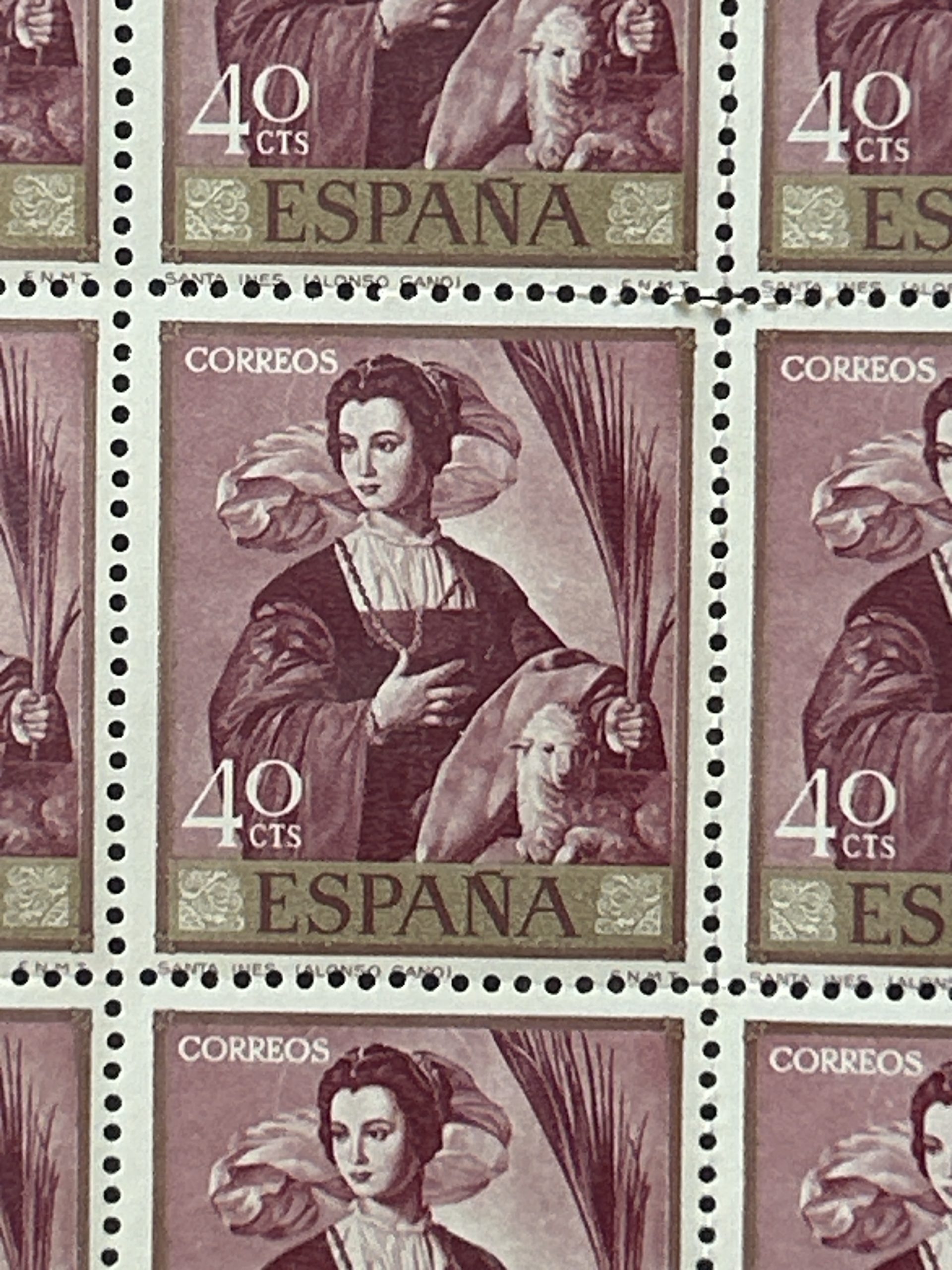 Pliego de 100 sellos de España – Santa Inés de Alonso Cano – 1969