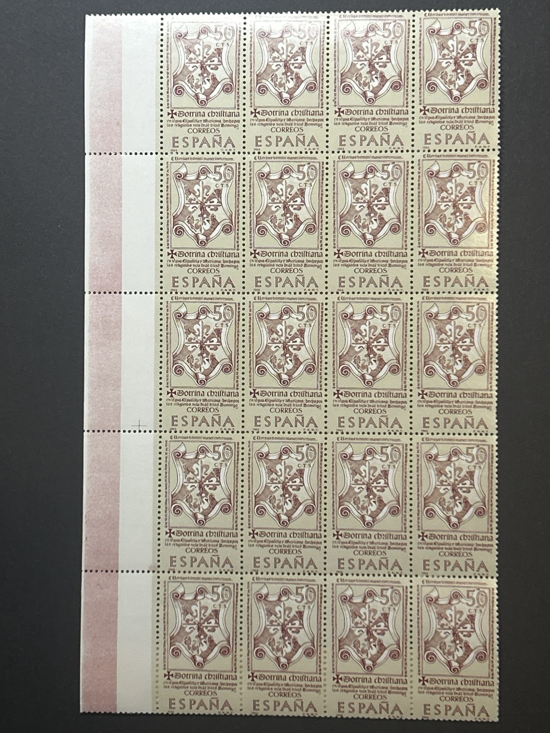 Pliego incompleto Bolque de 20 valores de 50 céntimos de Forjadores de América 1966.