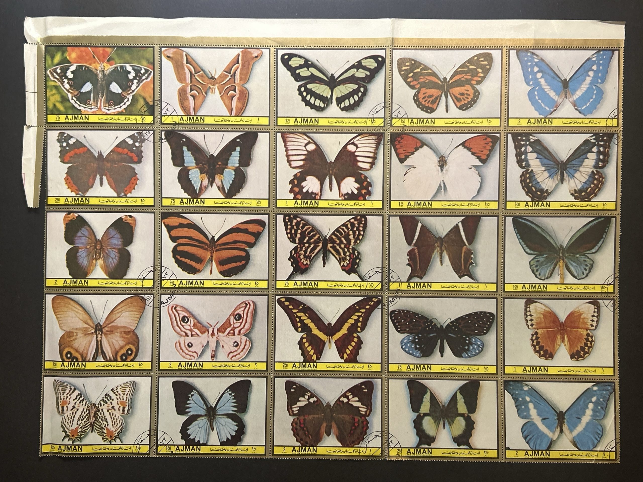 25 sellos precancelados diferentes en único pliego completo de 25 sellos