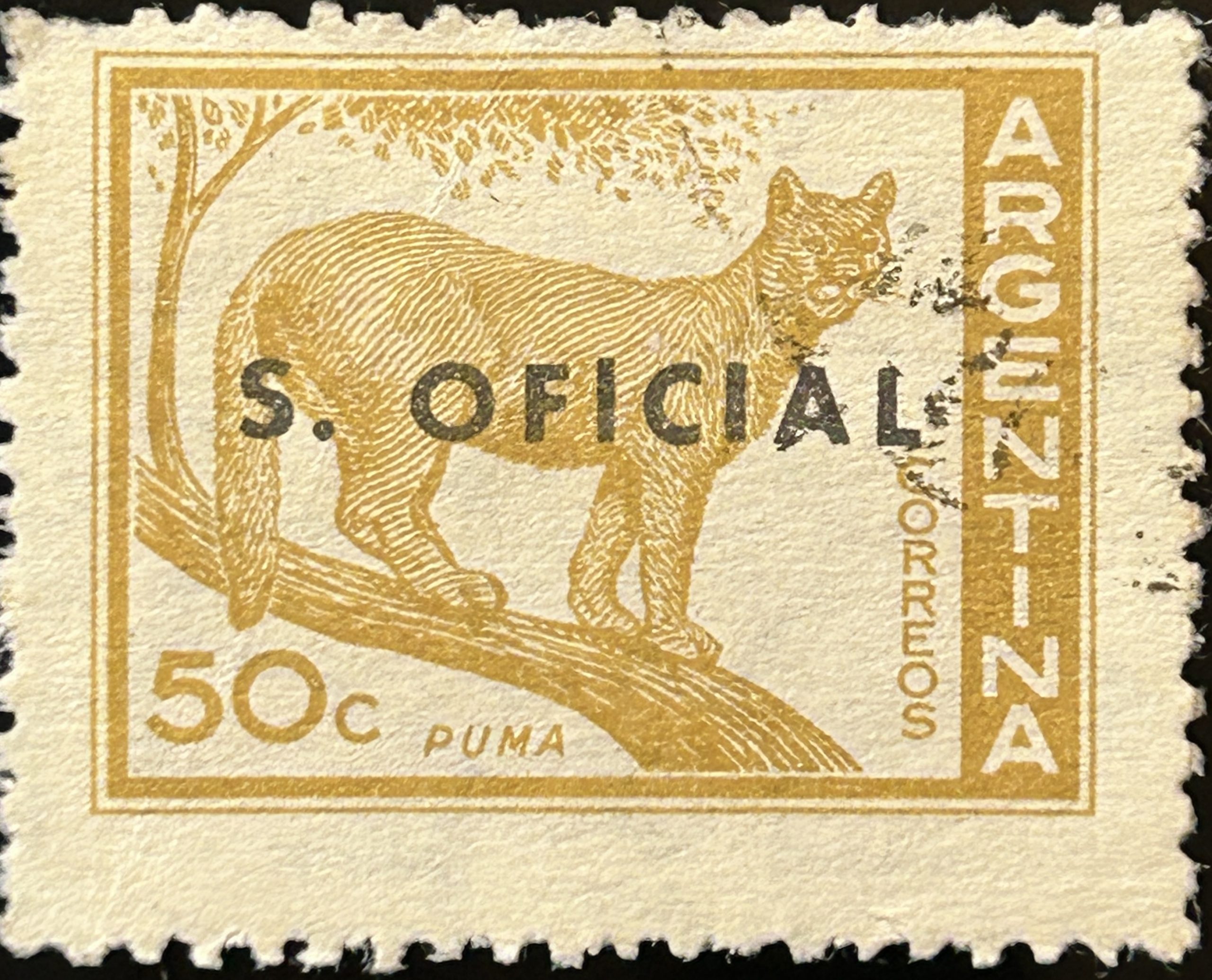 Sello Argentina 1960 – Pumas sobreimpreso S. Oficial – 50c Marrón Claro Usado