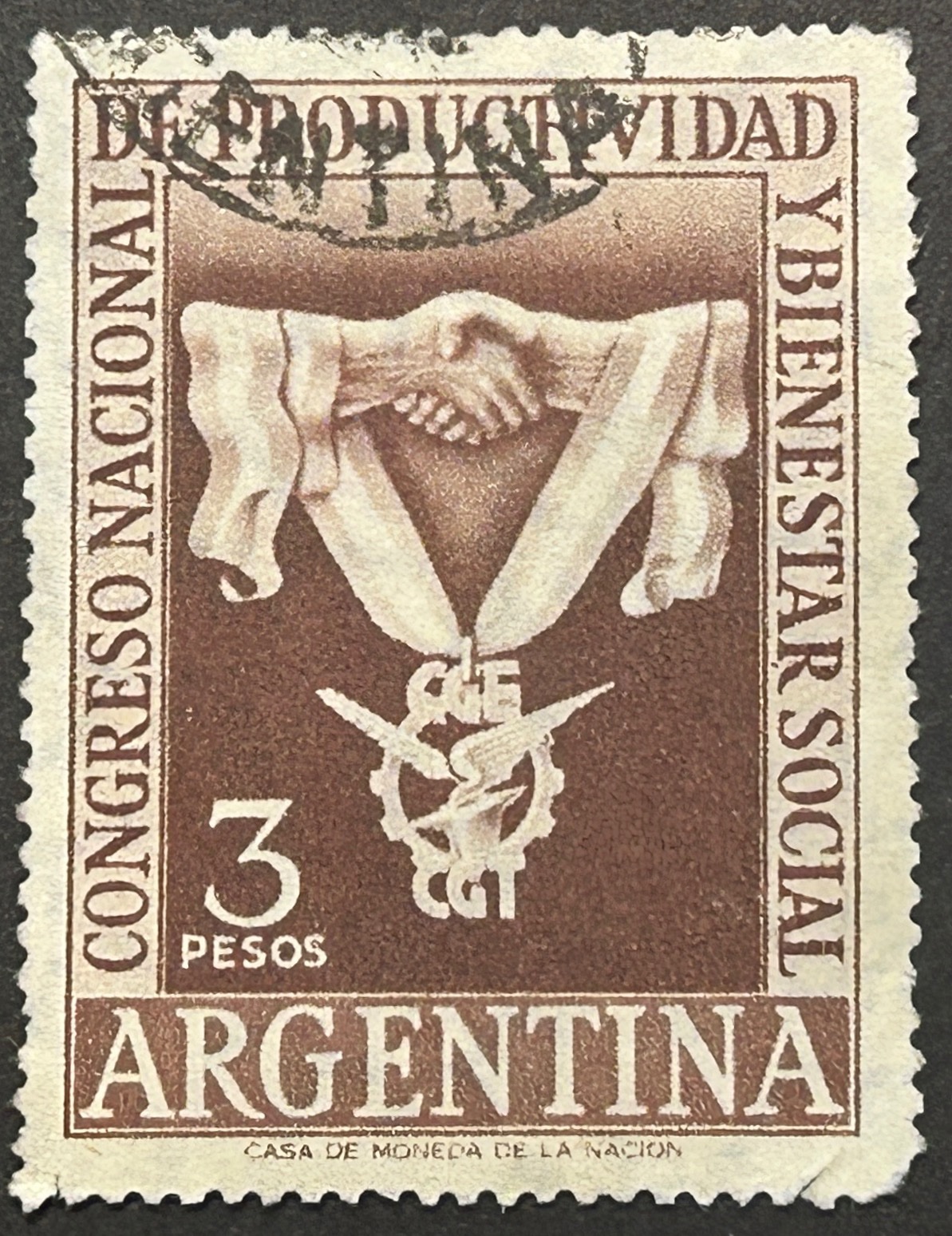 Sello Argentina 1955 – CGT Congreso de Productividad – 3 Pesos Marrón Usado