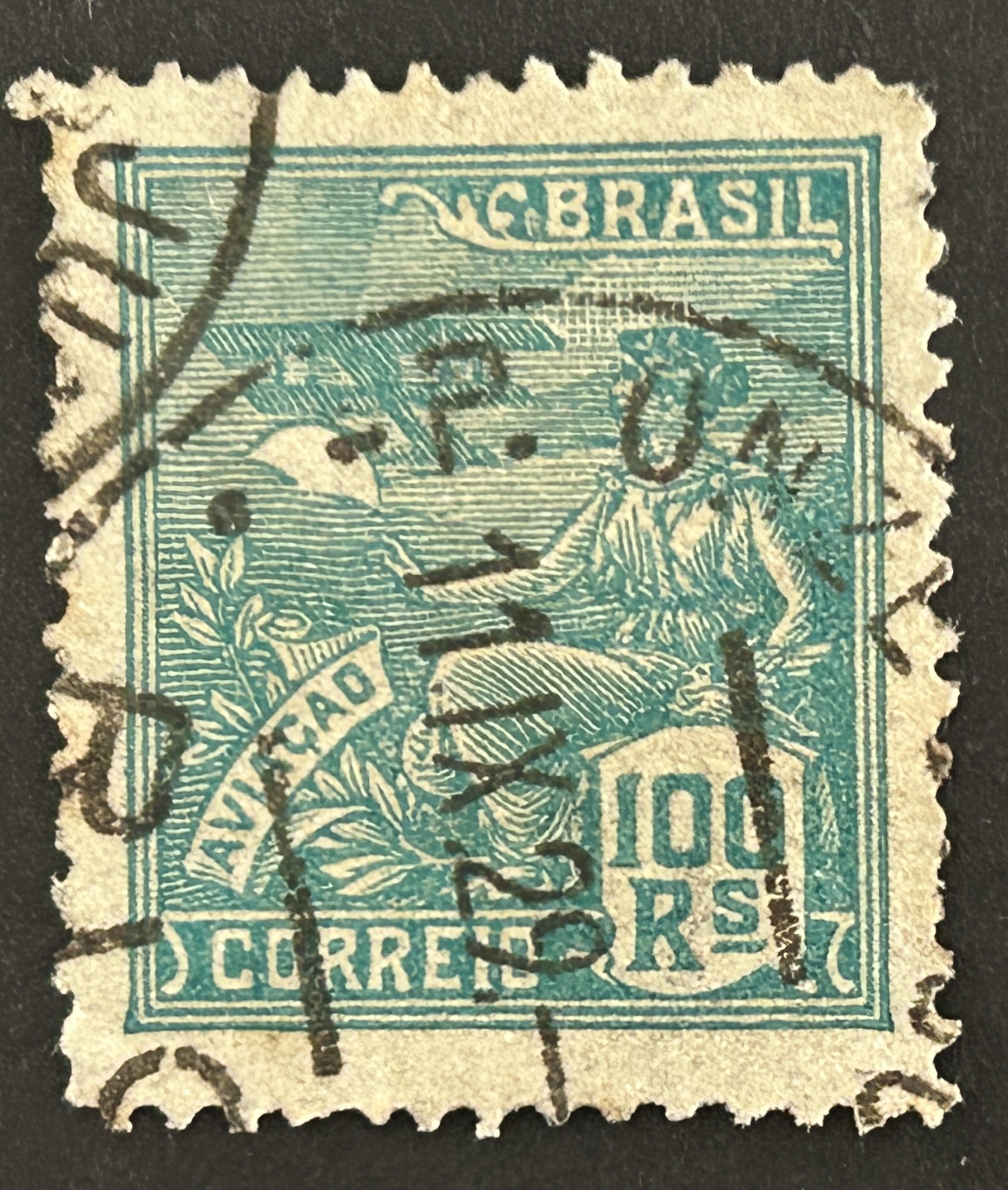 Sello Brasil – Aviación – 100 Reales, verde usado
