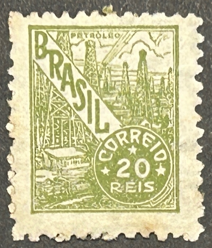Sello Brasil 1942 – Petróleo – 20 Reis , Verde Oliva , Usado