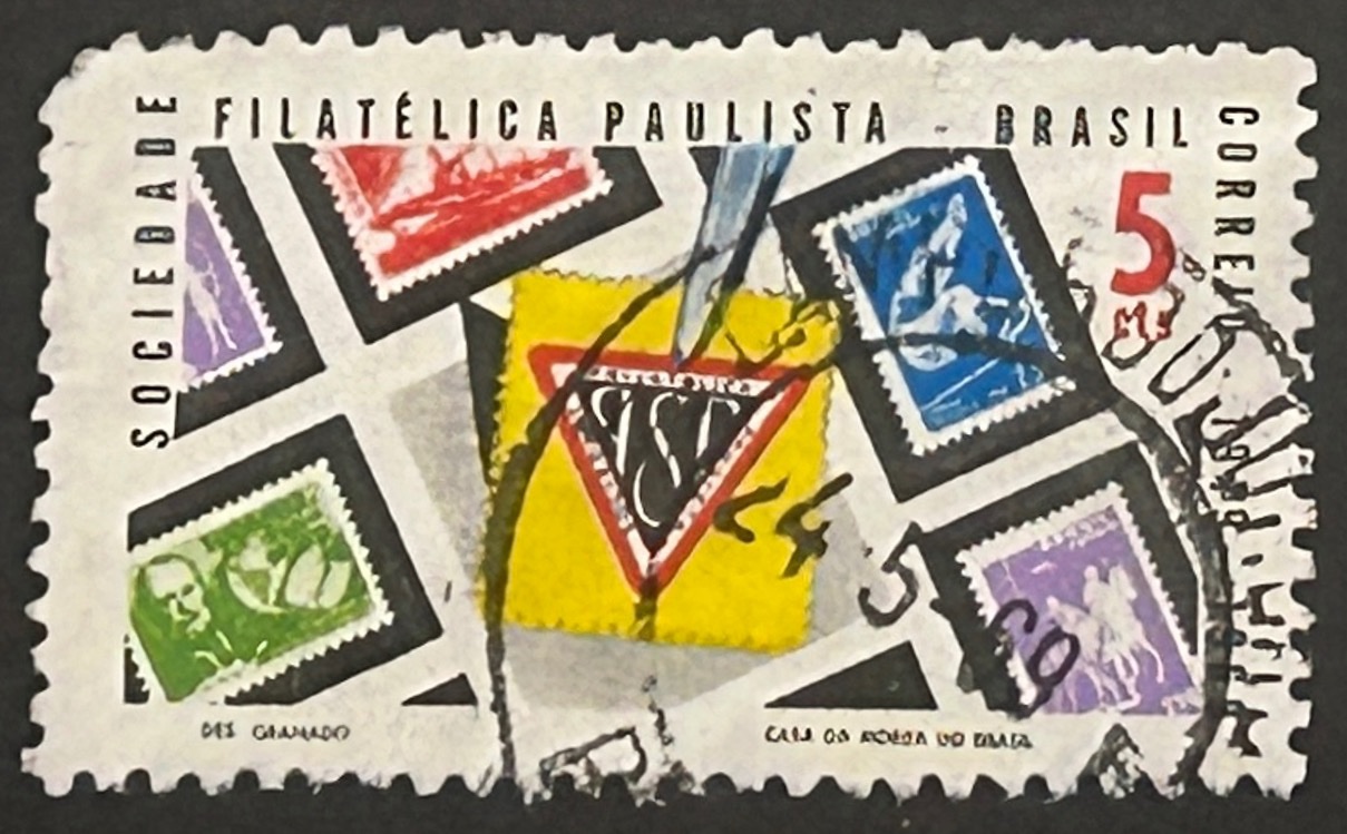 SPP (São Paulo Philatelic Society) emblem and Brazilian stamps.