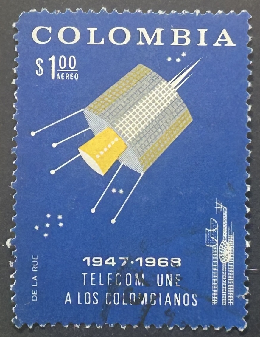 Sello Colombia 1968 – Telecom – 1 Peso , usado, Aéreo