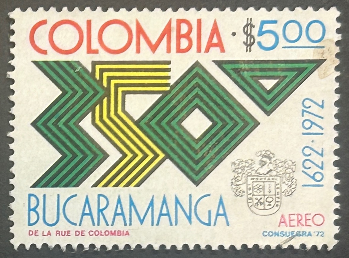 Sello Colombia 1972 – Bucamaranga – 5 Pesos Usado Aéreo
