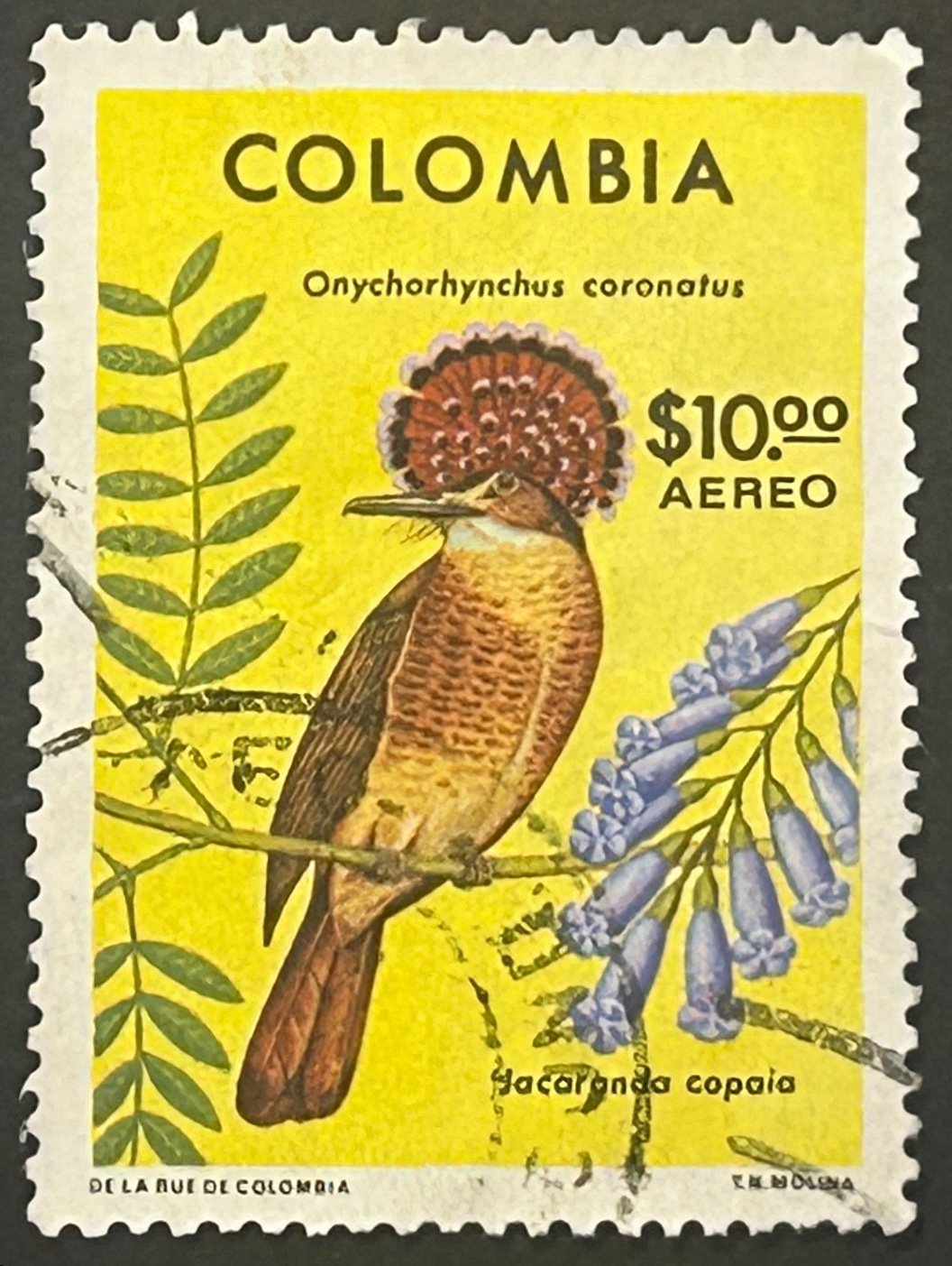 The Royal Flycatcher (Onychorhynchus coronatus) is a passerine bird of the tyrant flycatcher family. It is found in forest and woodland from Mexico to Peru, Bolivia and Brazil. Some authorities divide it into 4 species. Two of these are in Colombia.