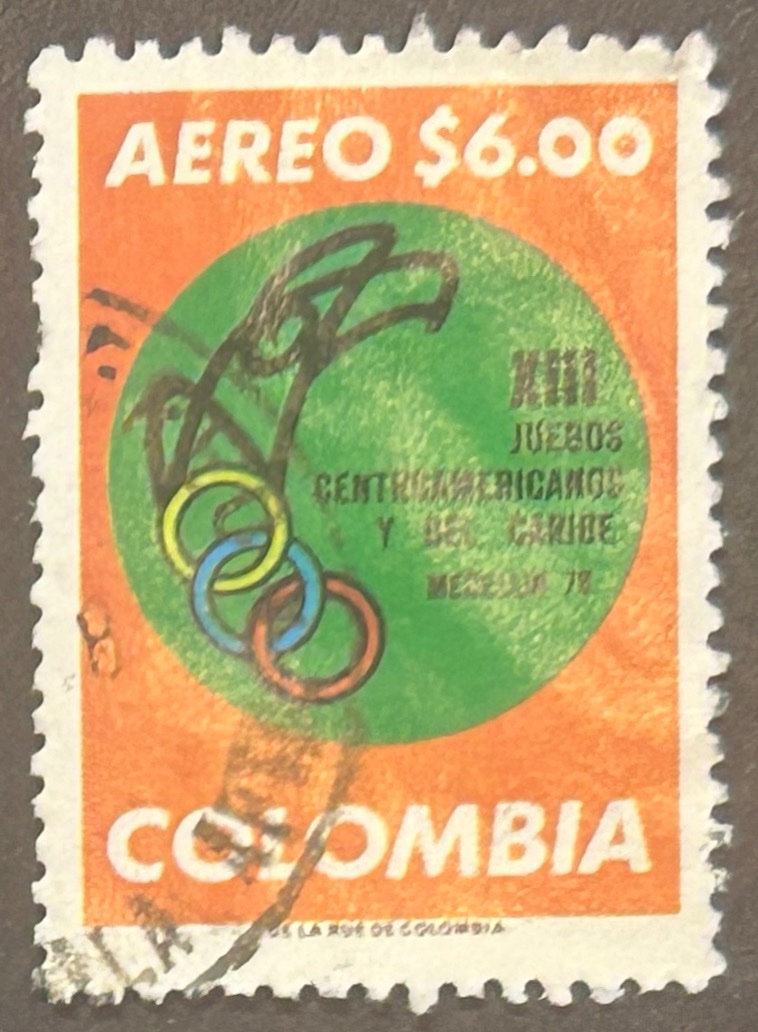 Sello Colombia 1977 – XIII Juegos Centroamericanos y el Caribe – $6,00 Aéreo Usado