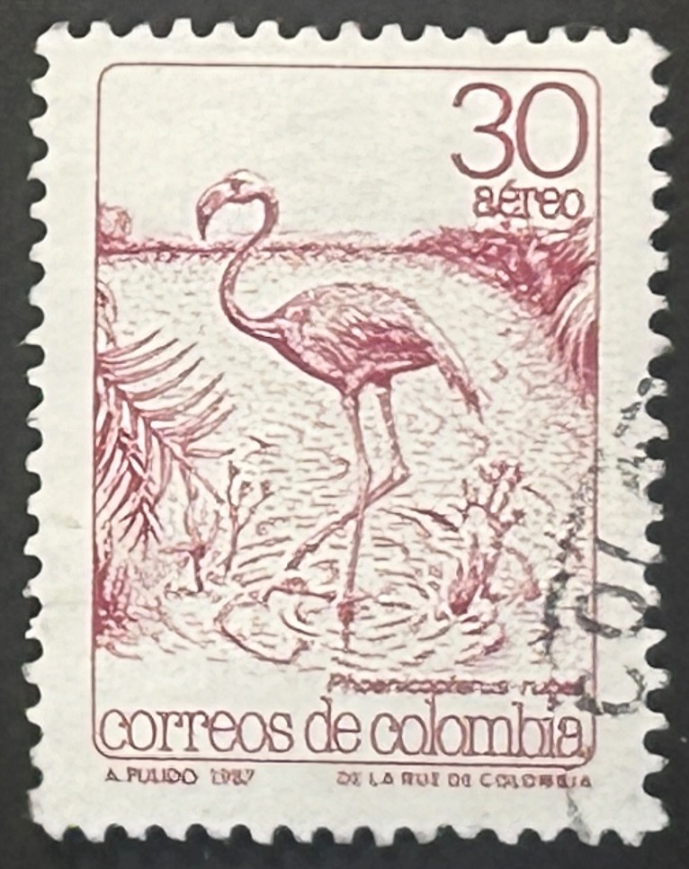 Sello Colombia 1987 – Flamenco – 30 Pesos Aéreo Usado