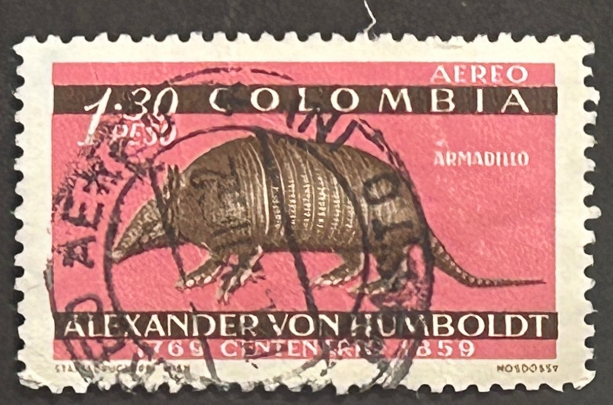 The nine-banded armadillo, is a medium-sized mammal found in North, Central, and South America. It is mainly a nocturnal animal, found in many kinds of habitats, from mature and secondary rainforests to grassland and dry scrub. It is an insectivore, feeding chiefly on ants, termites, and other small invertebrates.