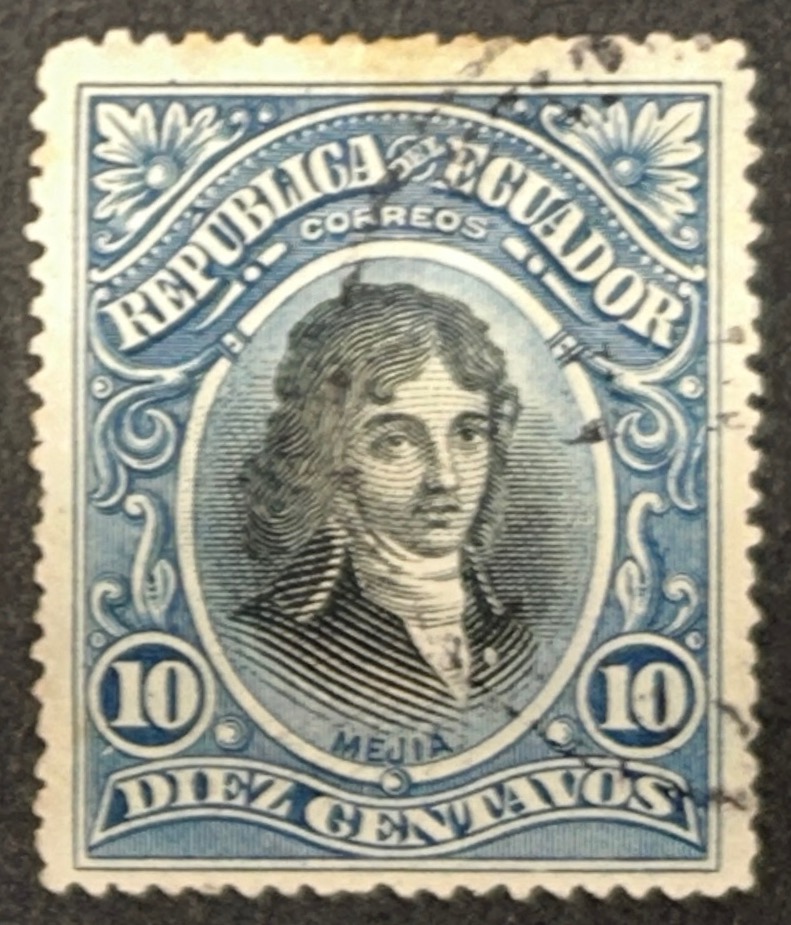 Sello Ecuador – Mejía – 10 Centavos Azul y Negro Usado.