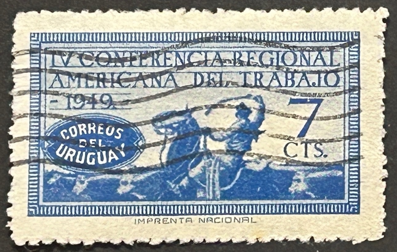 Sello Uruguay 1949 – Conferencia del Trabajo – 7cts. usado