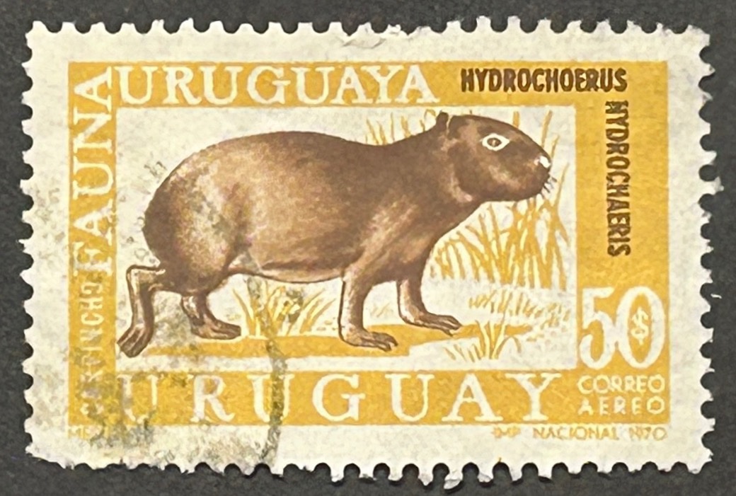 Sello Uruguay 1970 – Carpincho – 50 $ – Aéreo, usado