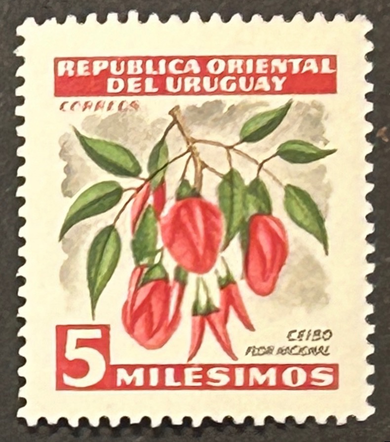 Sello Uruguay 1959 – Ceibo Flor Nacional- 5 Milésimos