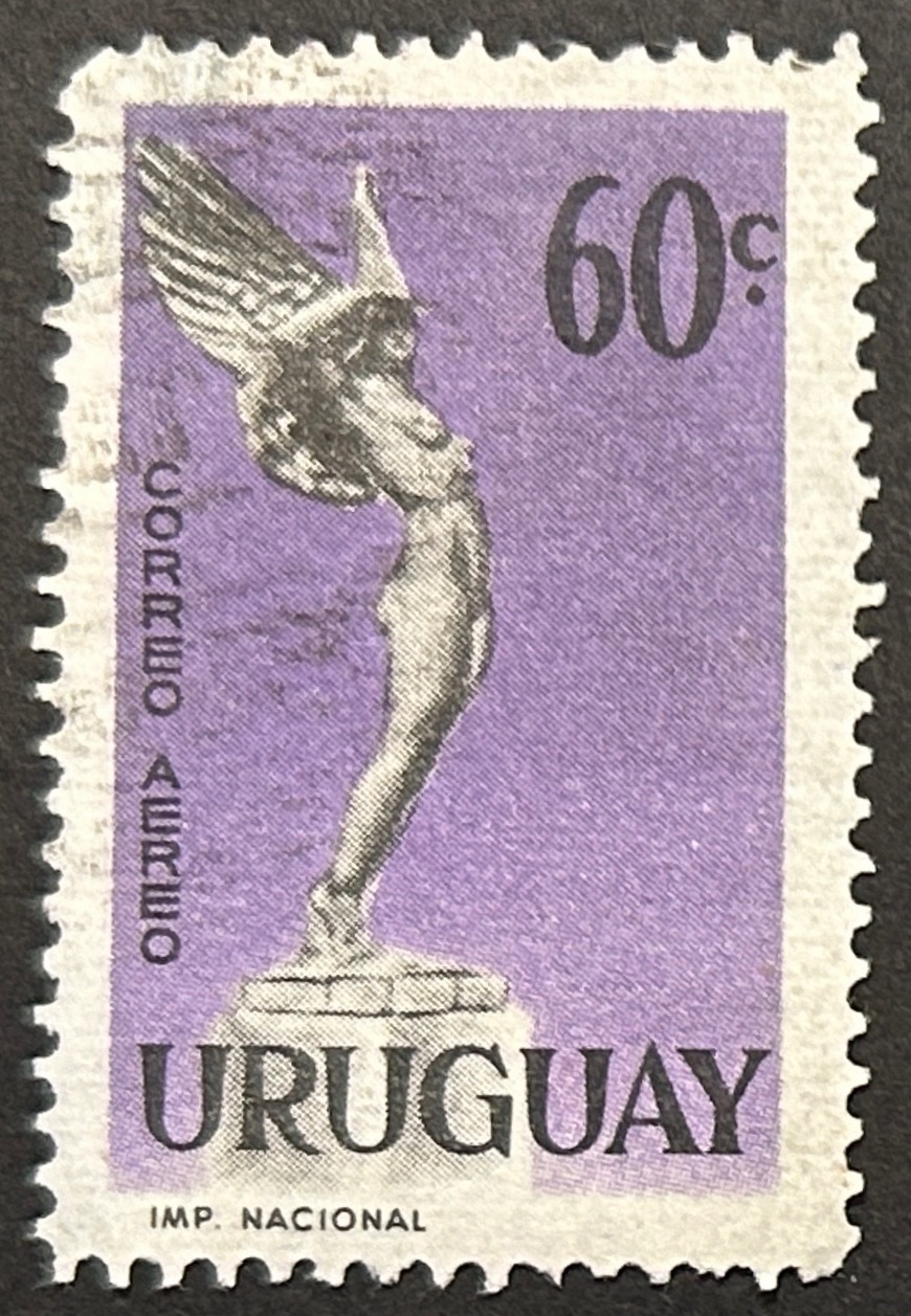 Sello Uruguay 1959 – Diosa Alada – 60c. Lila y negro
