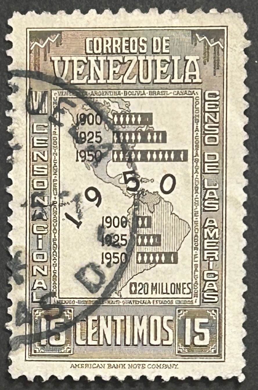 Sello Venezuela 1959 – censo de las Americas – 15 Céntimos Usado