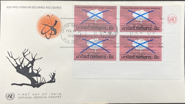Sobre Primer Día 1972 – UN no proliferación de armas nucleares 4x 8c NY