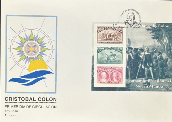 Sobre Primer Dia – Cristóbal Colón Tomando Posesion del Nuevo Mundo – Gran Tamaño – Emision conjunta 1992