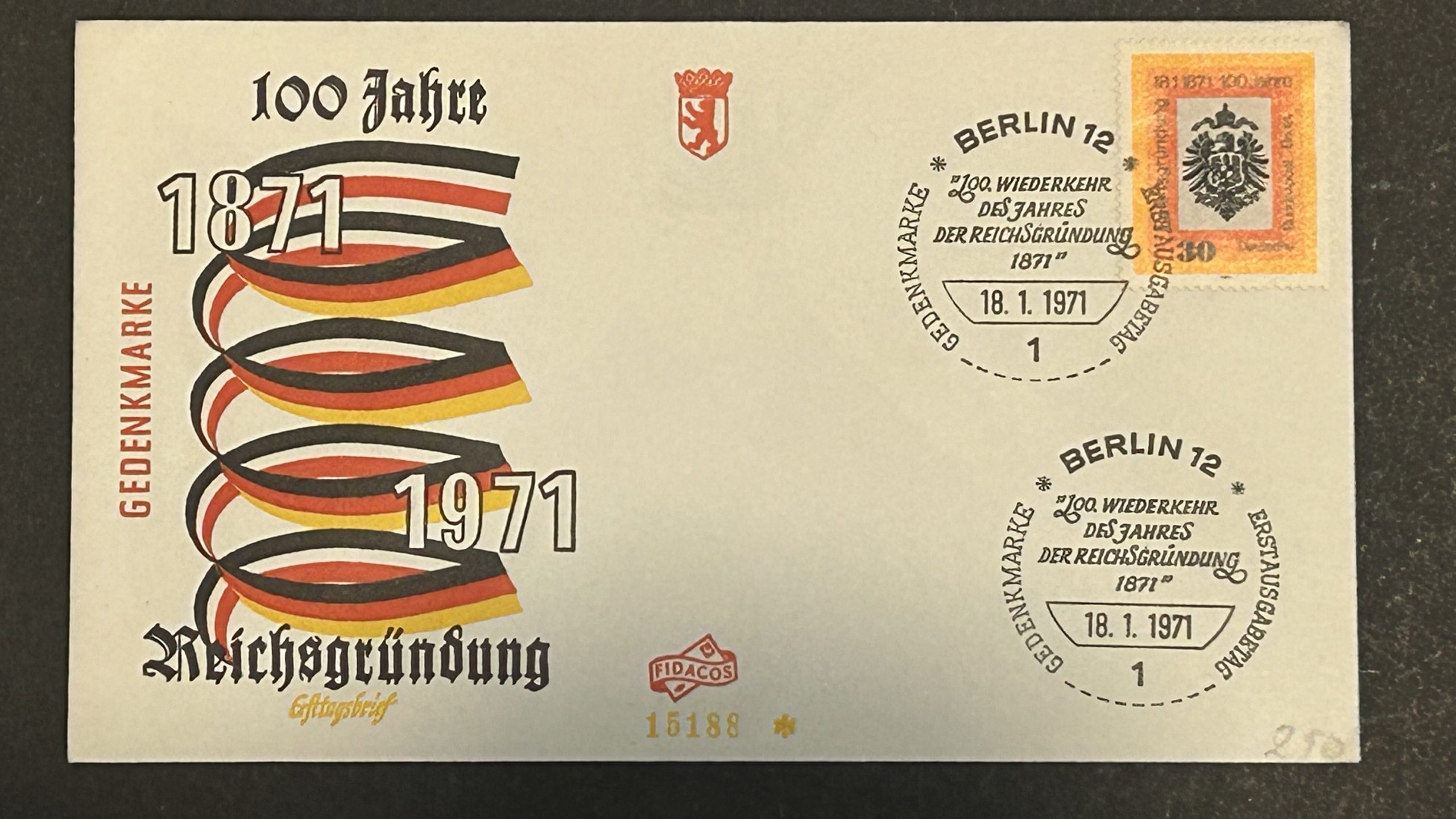FDC Sobre Primer Día- Alemania 1971 – Centenario de la fundación del imperio Alemán