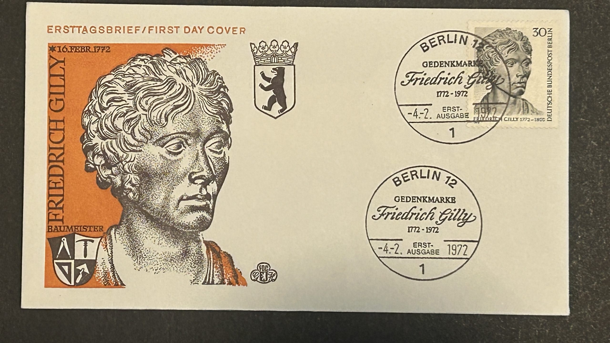 Sobre primer día de Alemania de 1972 dedicado a Friedrich Gilly