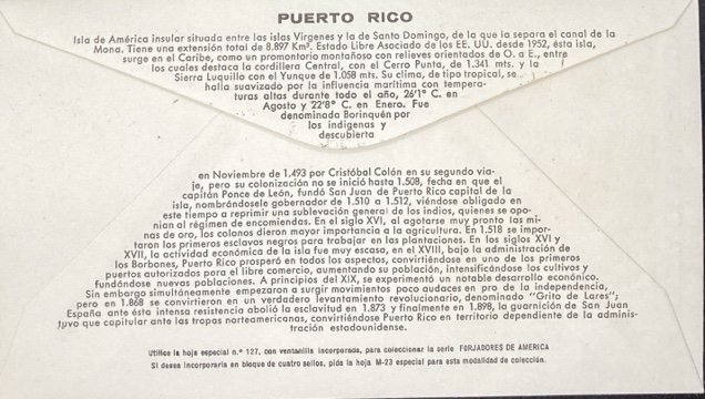 Sobre Primer Día – Fiesta de la hispanidad- Puerto Rico – 1972