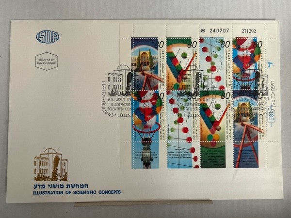 Ilustracion de Conceptos Científicos – Sobr econ hojita bloque de 8 valores, numerada en sobre de primer dia de gran formato