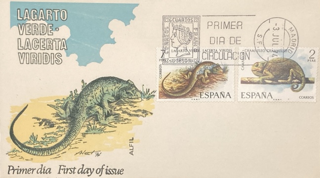 Sobre Primer Día 1974 – Lagarto Verde – España – 2 Valores
