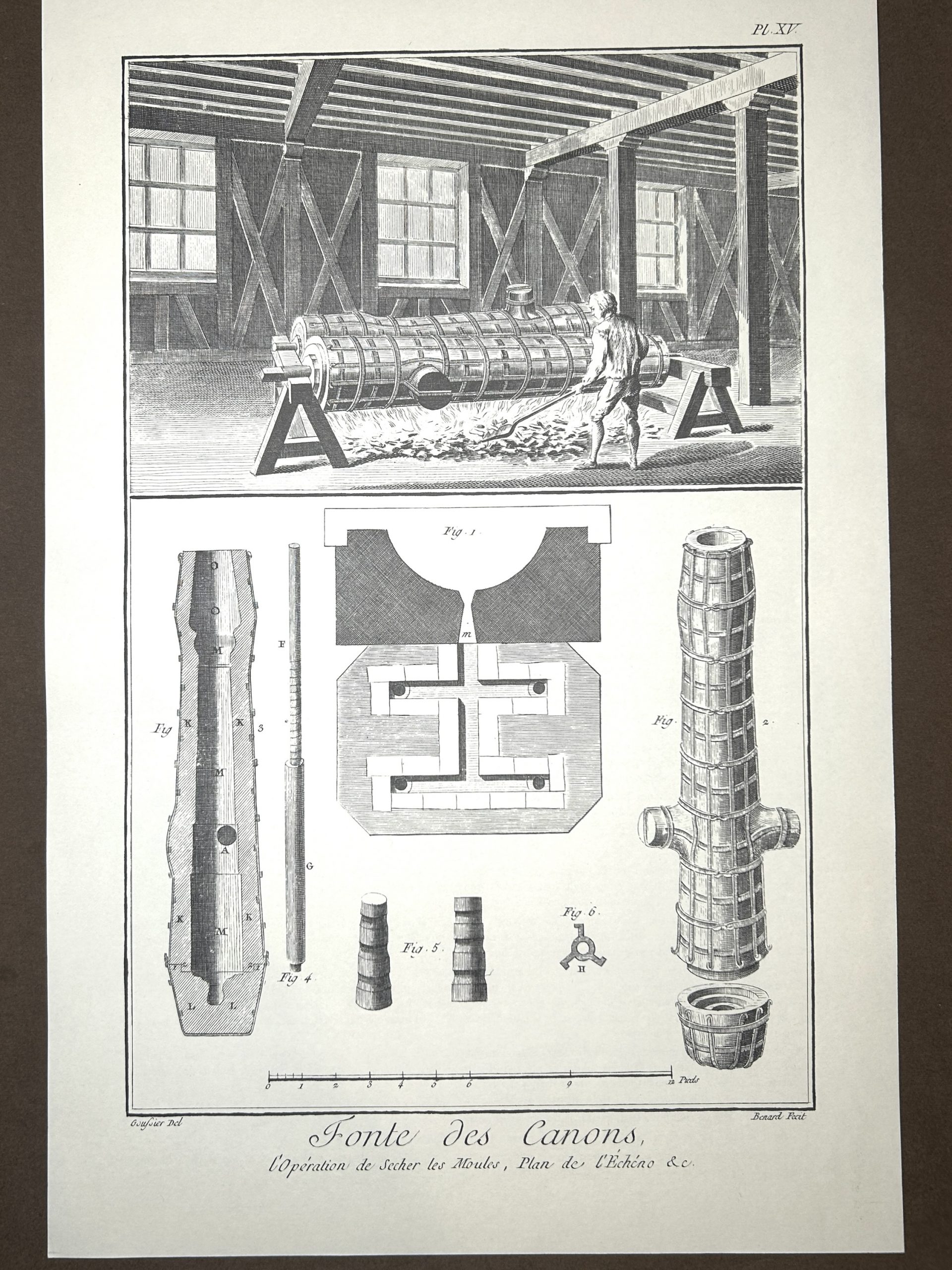 Lámina Facsímil Enciclopedia Diderot – España 2003 – 39 x 26 cm – Fontes des Canons – Lámina XV