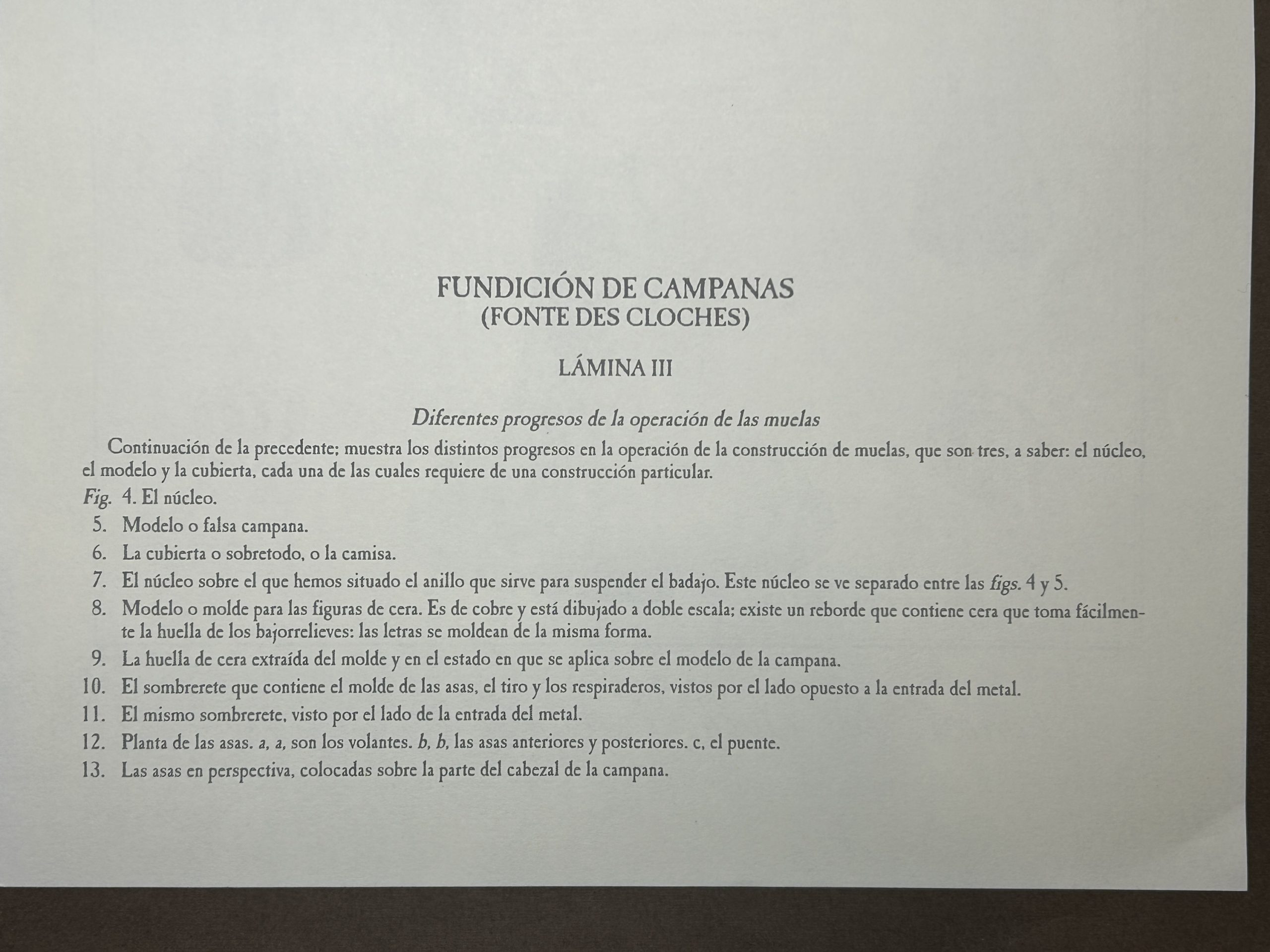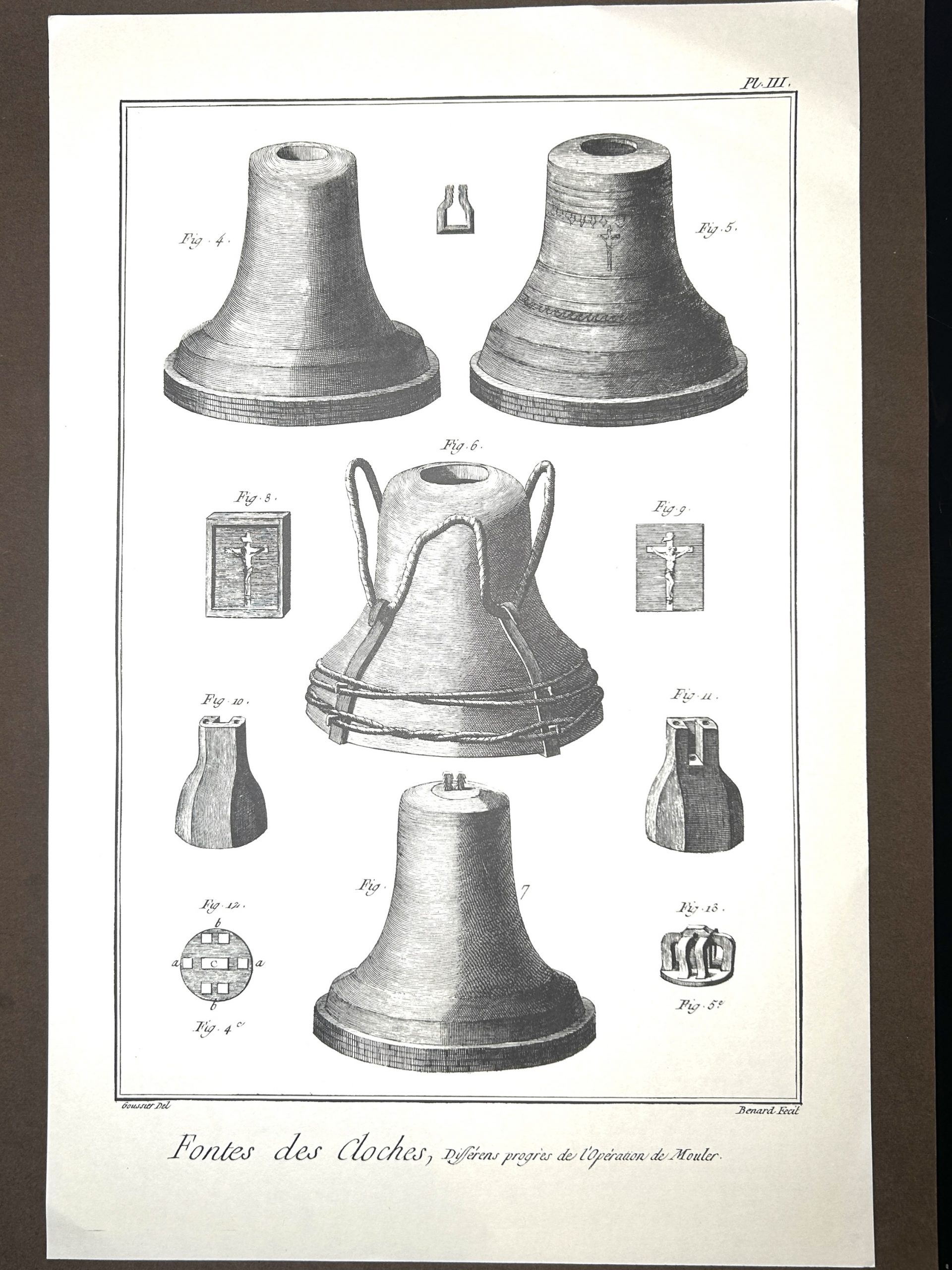 Lámina Facsímil Enciclopedia Diderot – España 2003 – 39 x 26 cm – Fontes des Cloches – Lámina III