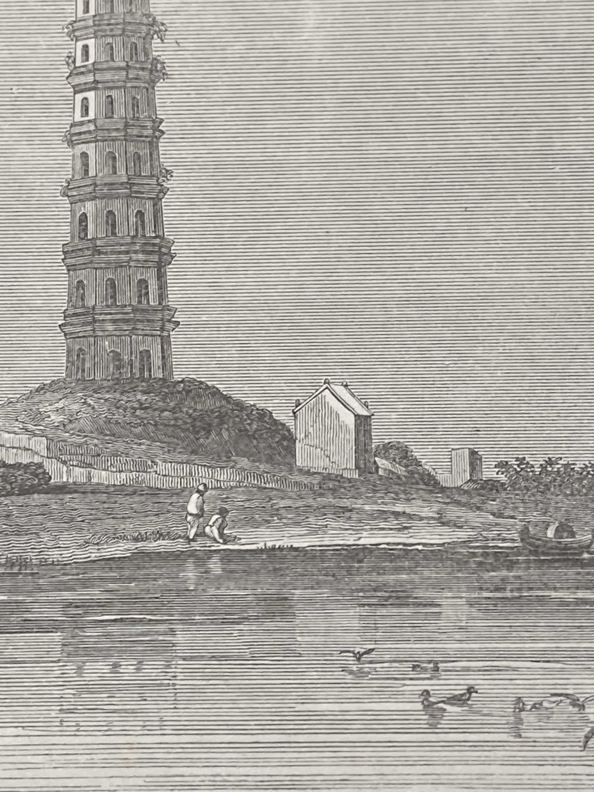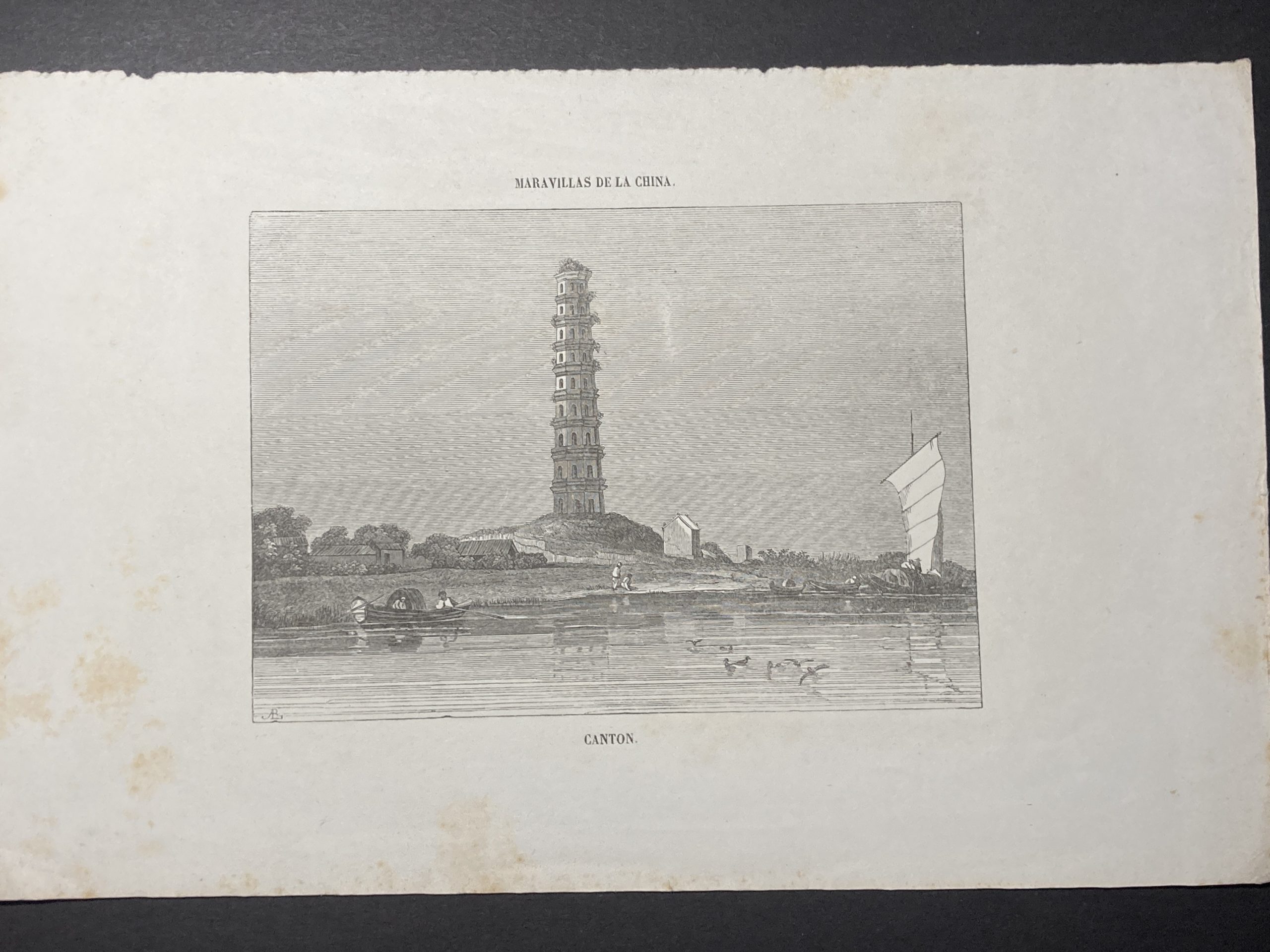 Lamina grabado de 1855 con suaves marcas de óxido de papel de 20 x 28 cm