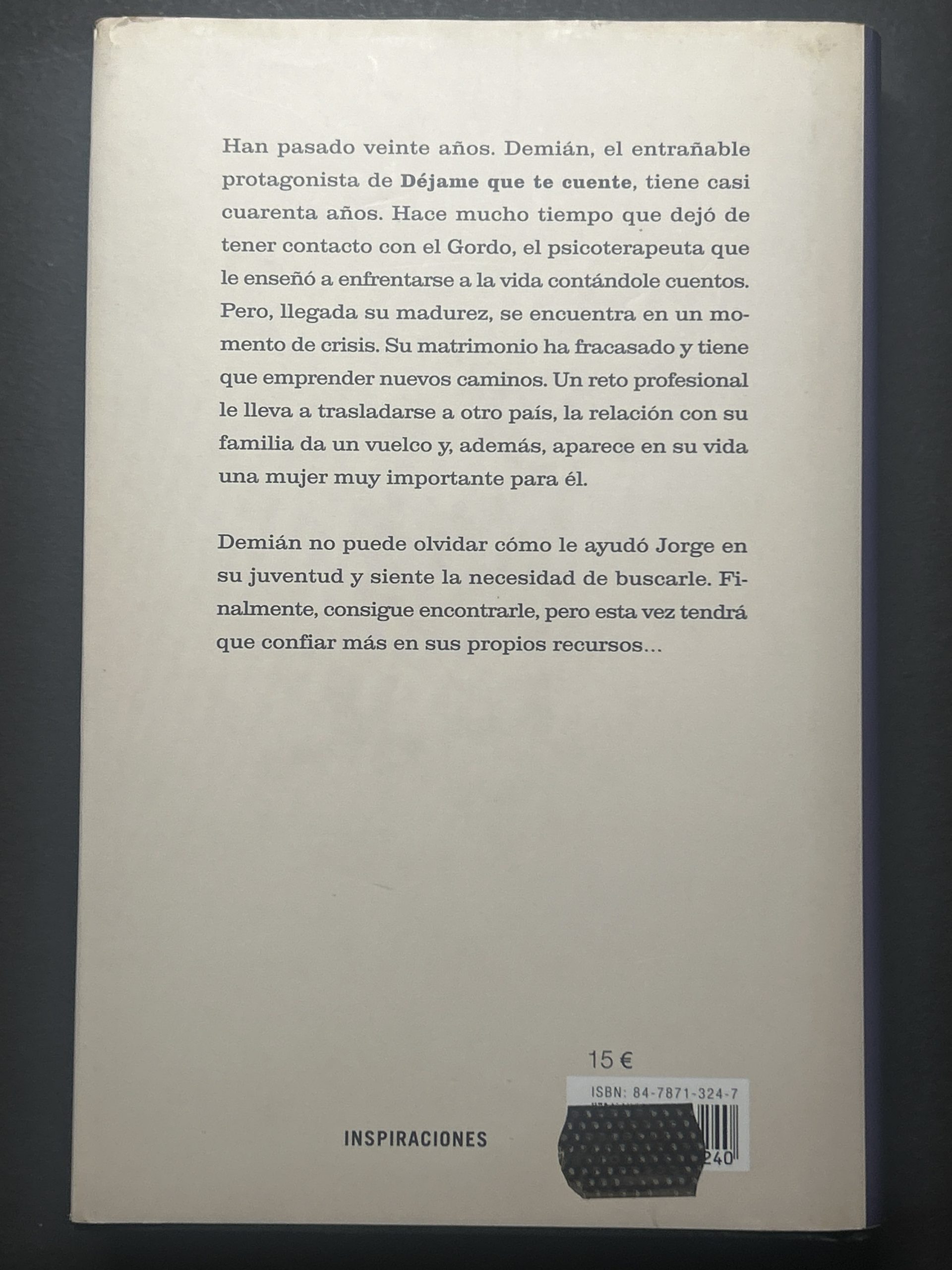 Han pasado veinte años. Demián, el entrañable protagonista de Déjame que te cuente, tiene casi cuarenta años. Hace mucho tiempo que dejó de tener contacto con el Gordo, el psicoterapeuta que le enseñó a enfrentarse a la vida contándole cuentos.