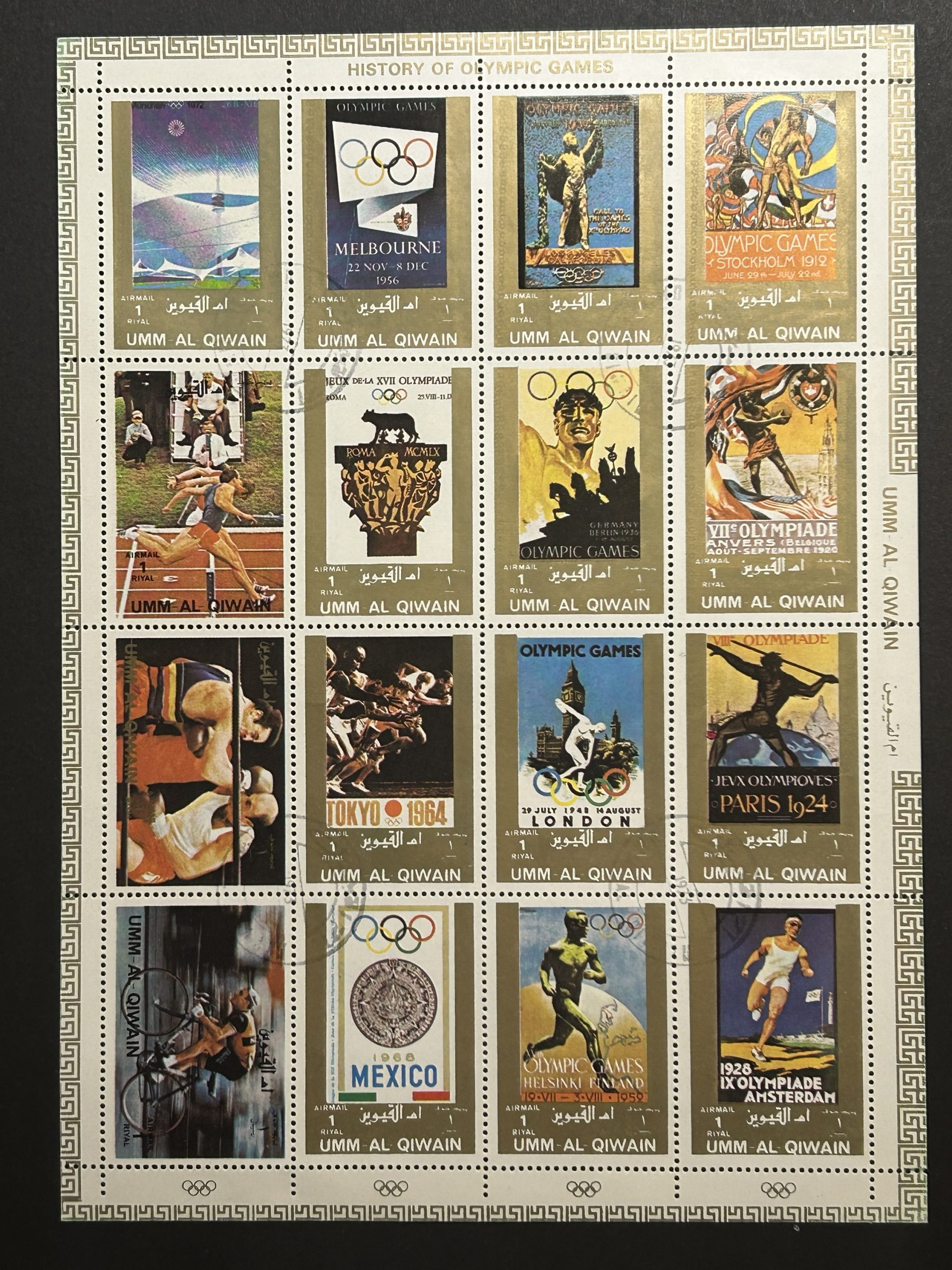 Minipliego sellos Umm al Qiwain 1973 – Historia de los Juegos Olímpicos- 16 Valores