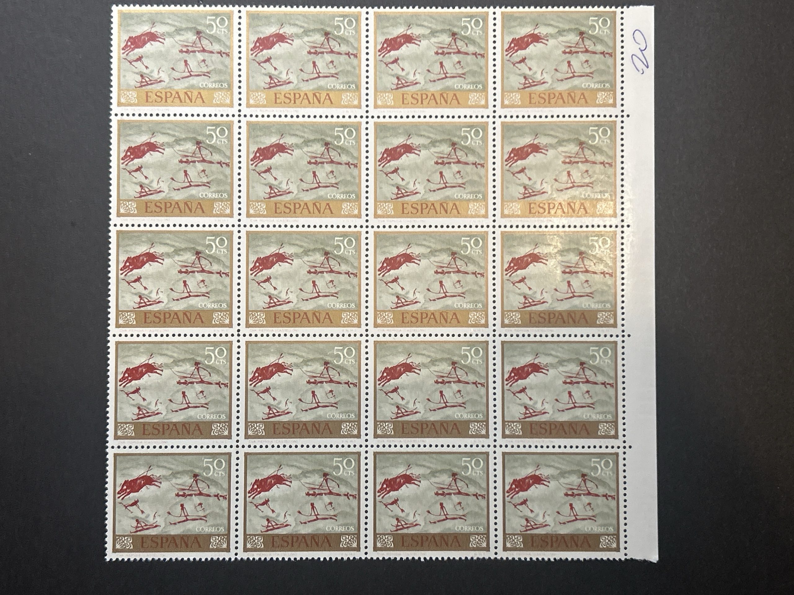Pliego incompleto- Bloque de 20 sellos de España – Homenaje al pintor desconocido – Cueva Remigia 1967