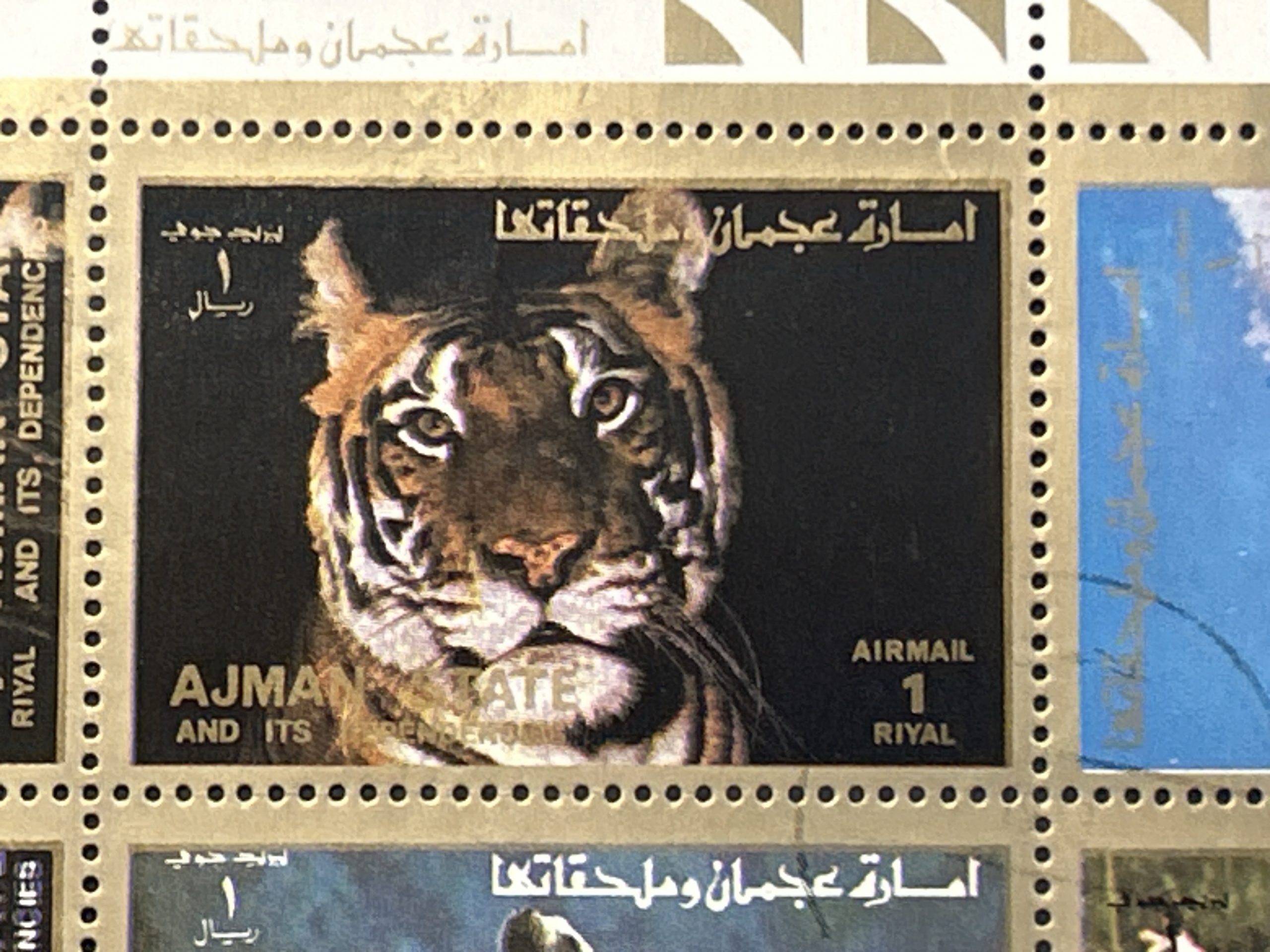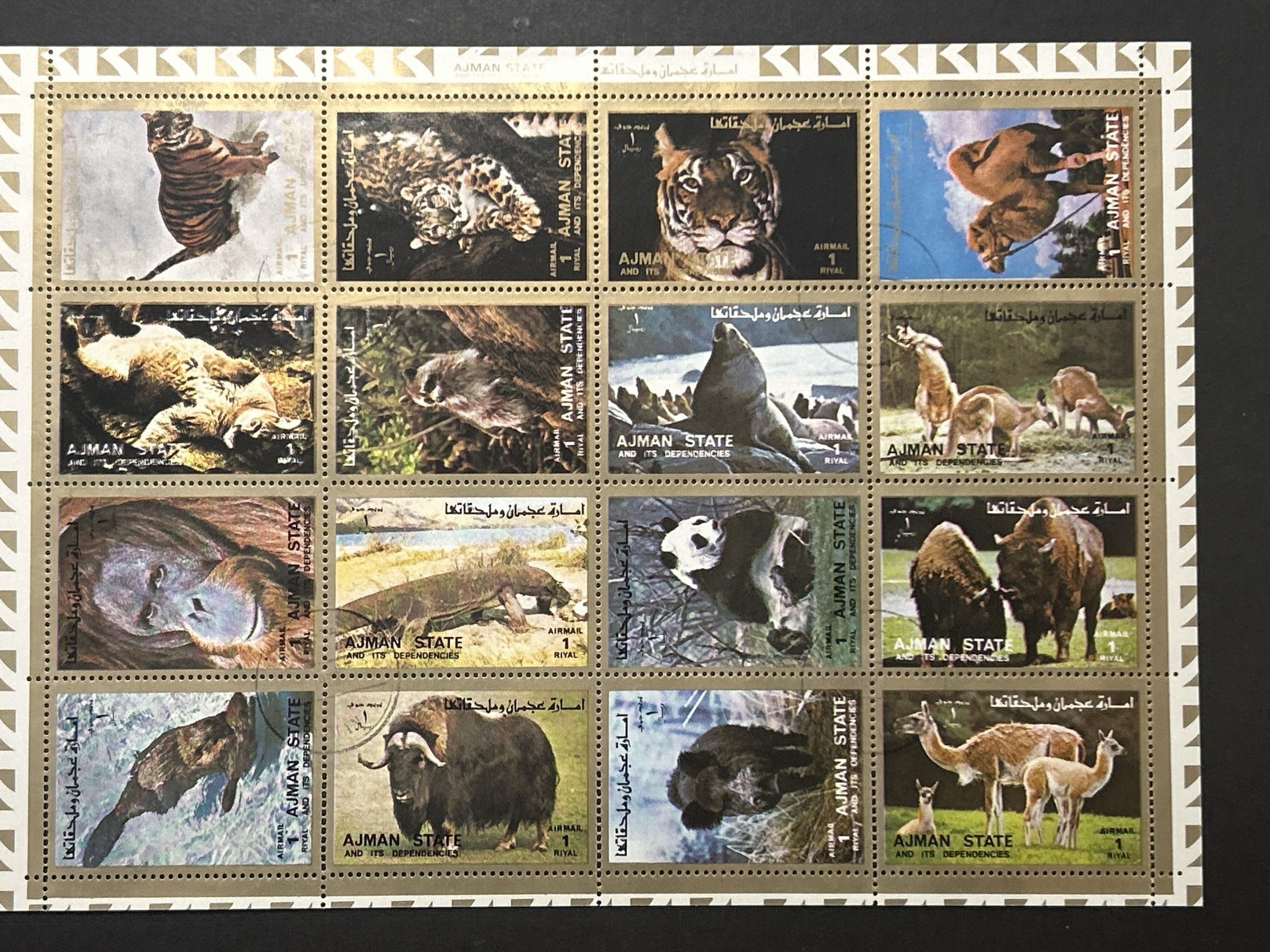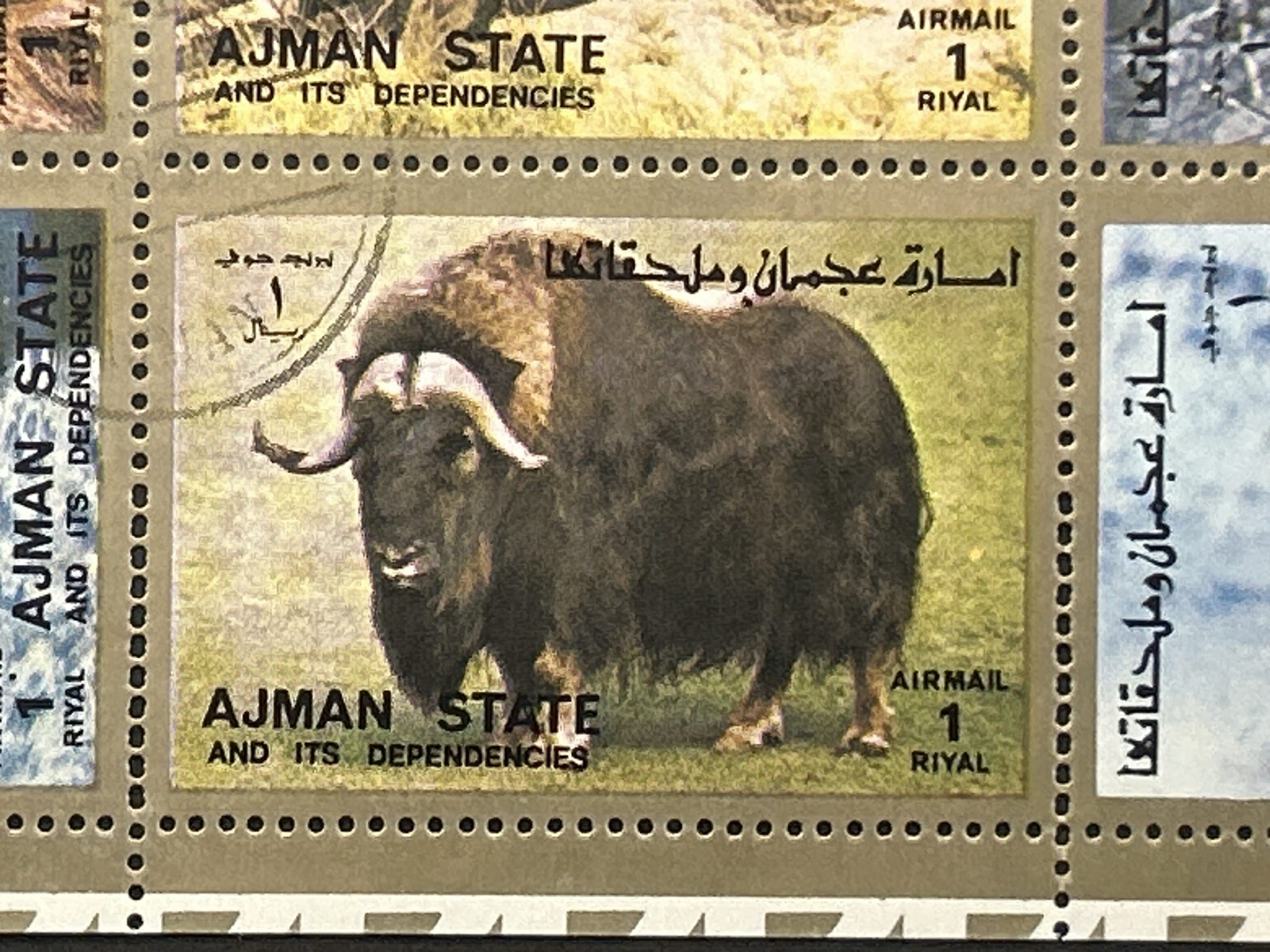 Pliego de animales salvajes emitido por Ajman State en 1973