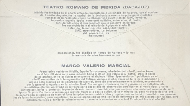 Sobre Alfil Matasellado de Barcelona y con dorso sobr eel Teatro Romano y Marco Valerio Marcial