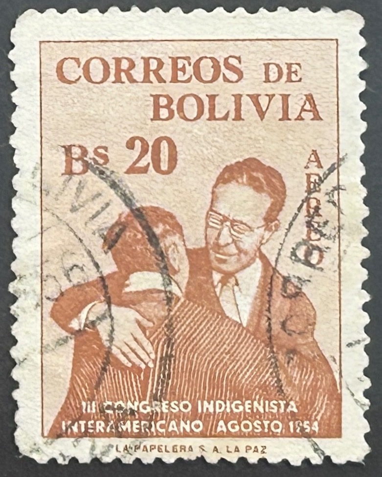 Sello Bolivia 1954 – III Congreso Indigenista – 20 Bs Marrón. Usado