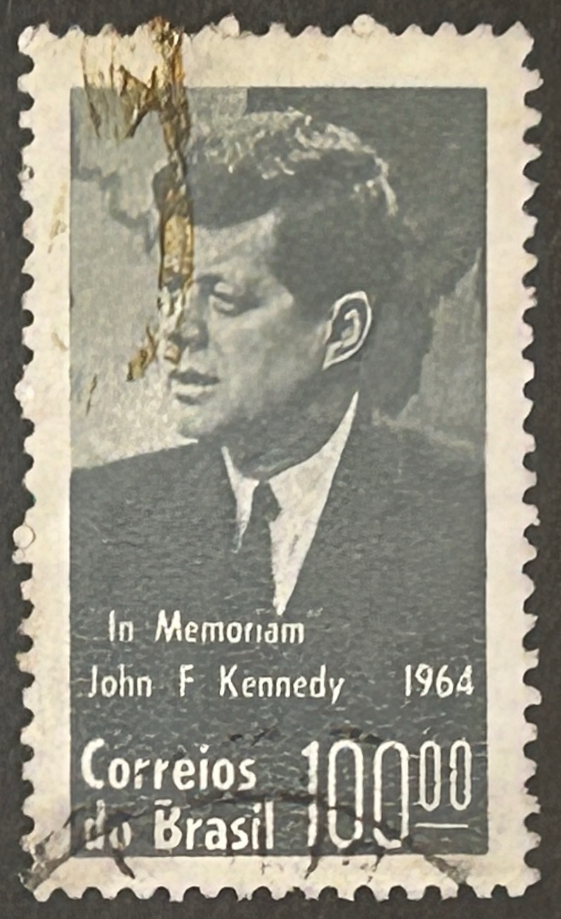 Sello Brasil 1964 – In Memorian JFK – 100,00 Cr$ Gris. Usado