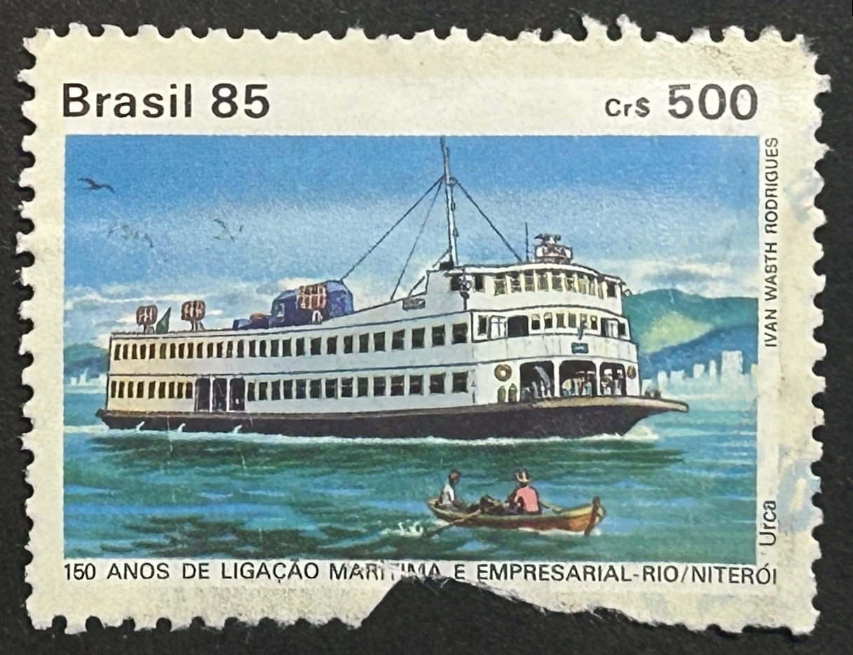 Sello Brasil 1985 – Conexión Marítima Urca – 500 Cr$ Deteriorado