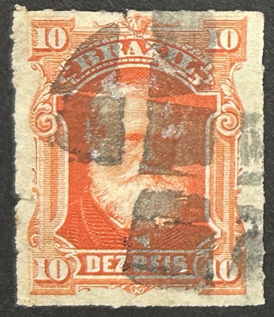 Sello Brasil 1877 – Emperador Pedro II – 10 Reis Naranja Usado