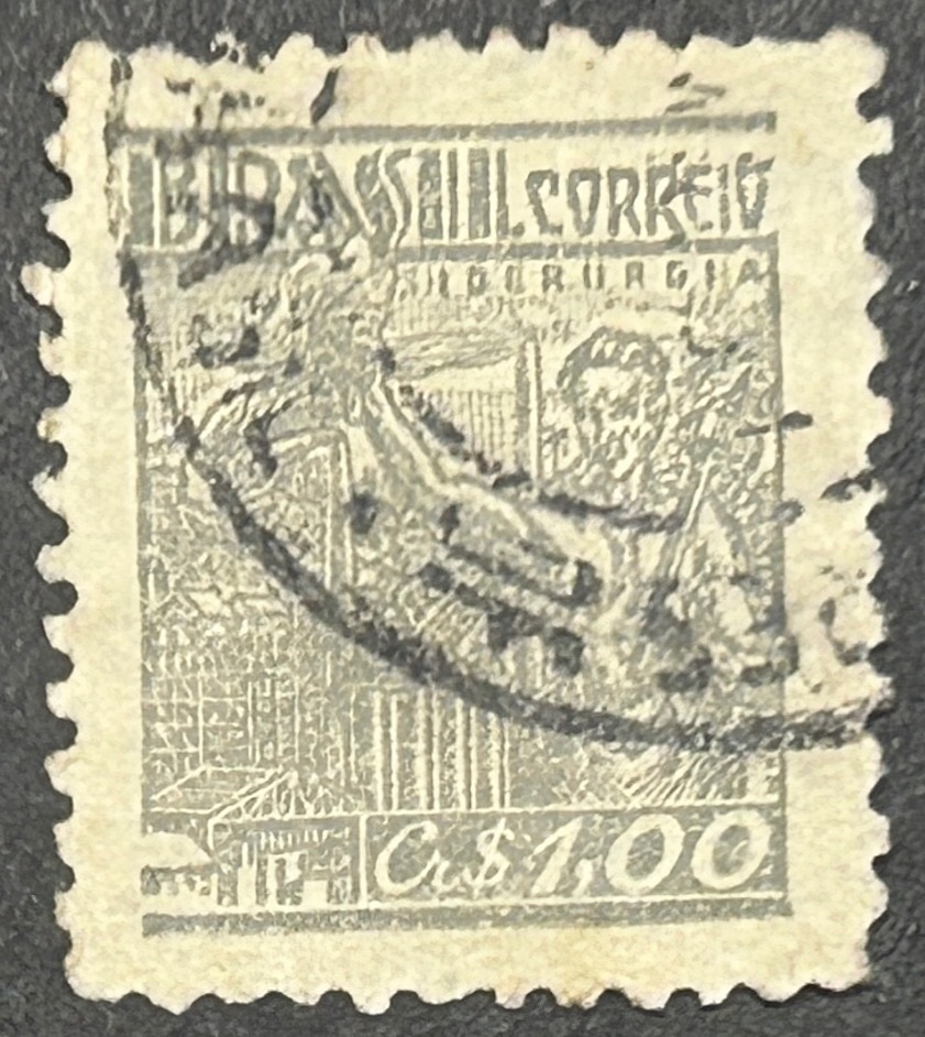 Sello Brasil 1946 – Siderurgia – 1 Cr$ gris usado