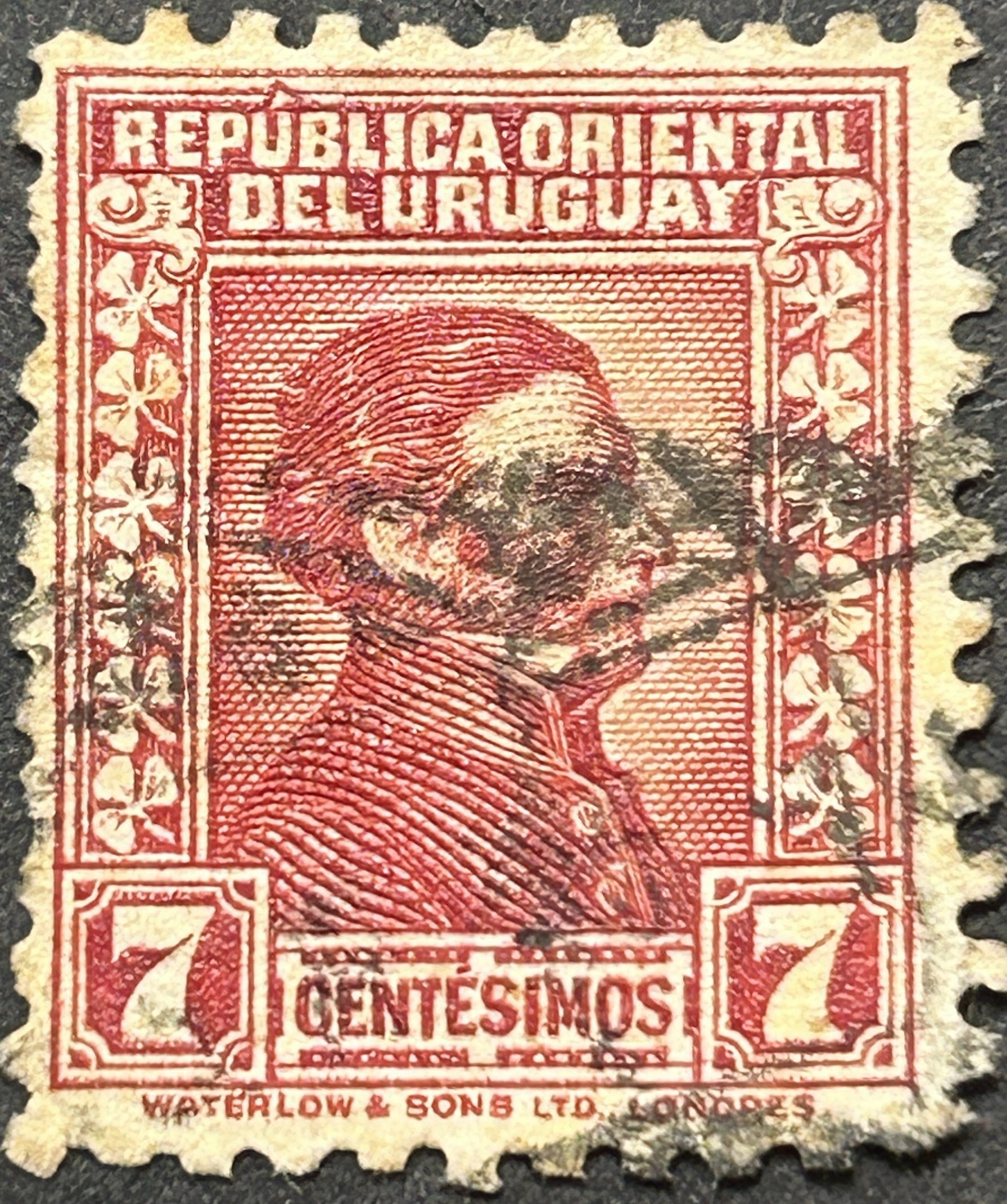 Sello Uruguay 1932 – Artigas de Blanes, 7 centésimos Rojo usado