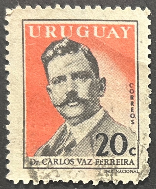 Sello Uruguay 1959 – Carlos Vaz Ferreira – 20c Naranja y Negro usado