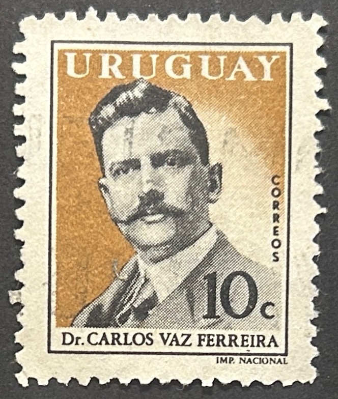 Sello Uruguay 1959 – Carlos Vaz Ferreira – 10c Ocre y Negro usado
