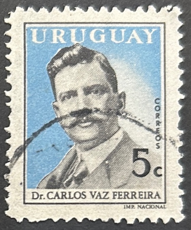 Sello Uruguay 1959 – Carlos Vaz Ferreira – 5c azul y Negro usado