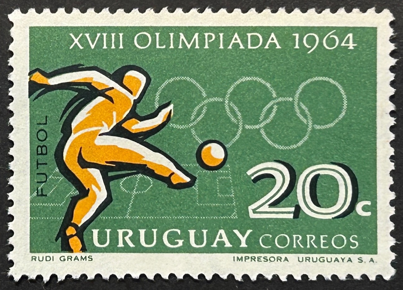 Sello Uruguay 1965 – Juegos Olímpicos Fútbol – 20 c