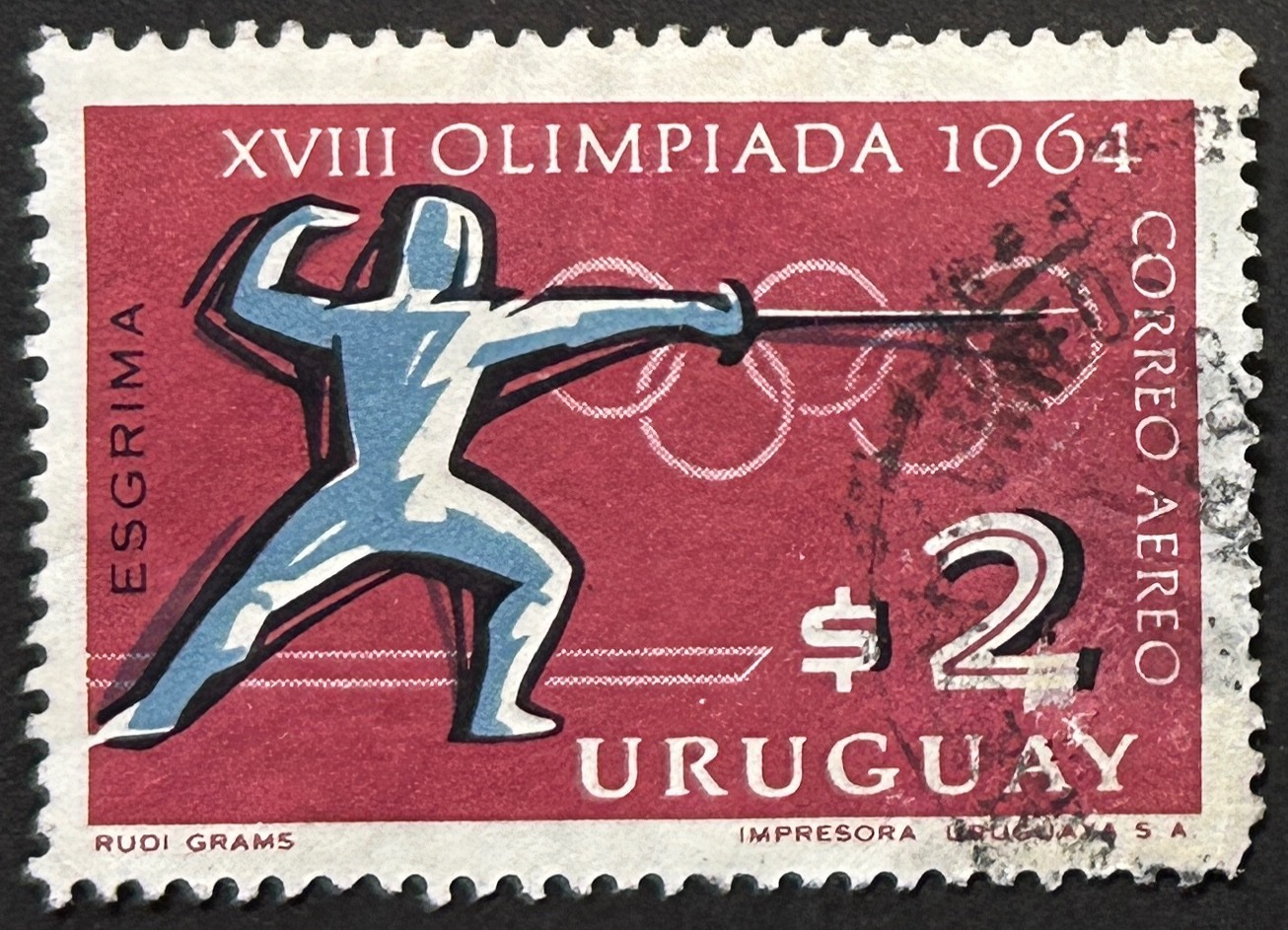 Sello Uruguay 1965 – Juegos Olímpicos Esgrima – 2$